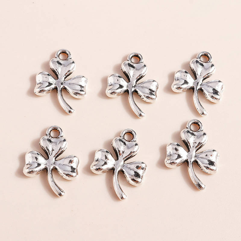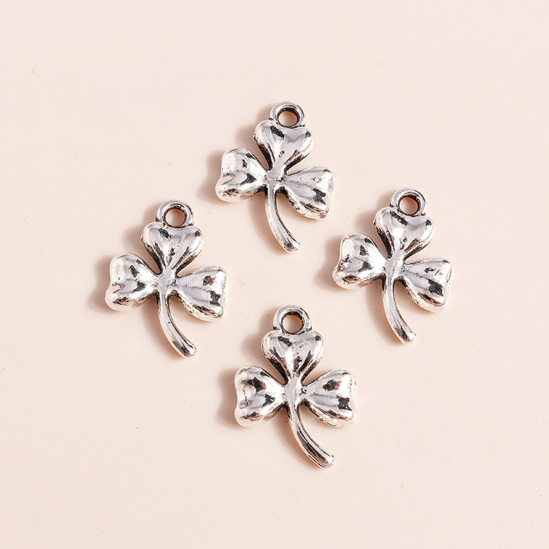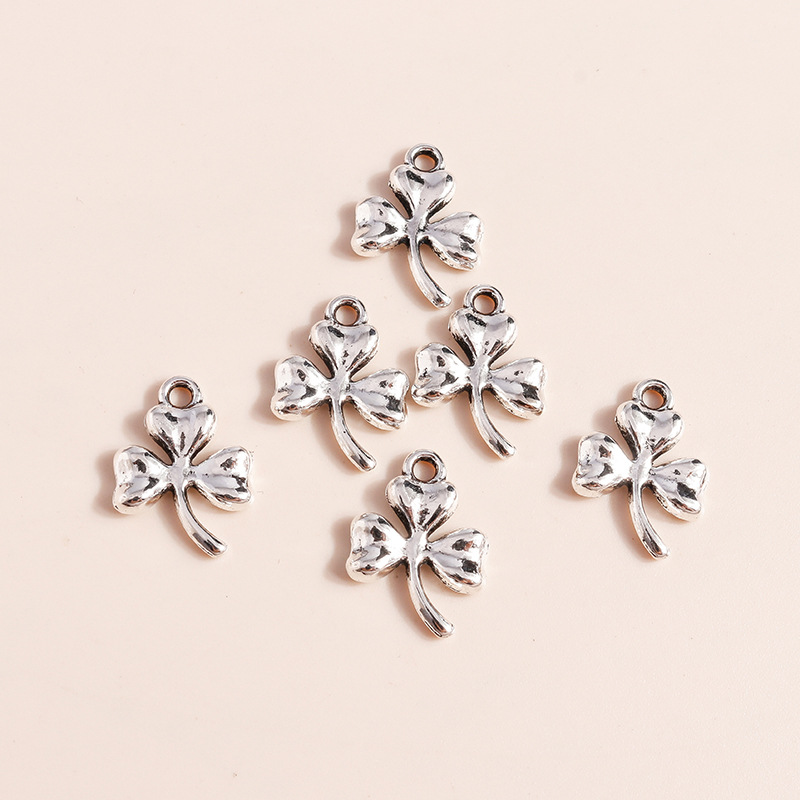 Pendentifs feuilles en alliage de zinc , Trois Clover Leaf, Placage, DIY, 30PC/sac, Vendu par sac