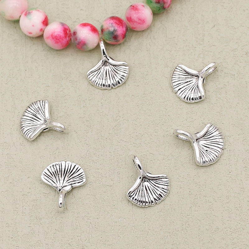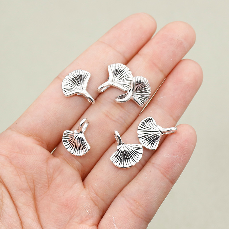 Pendentifs feuilles en alliage de zinc , Ginkgo Feuille, Placage de couleur argentée, DIY, argent, 15x13mm, Vendu par PC