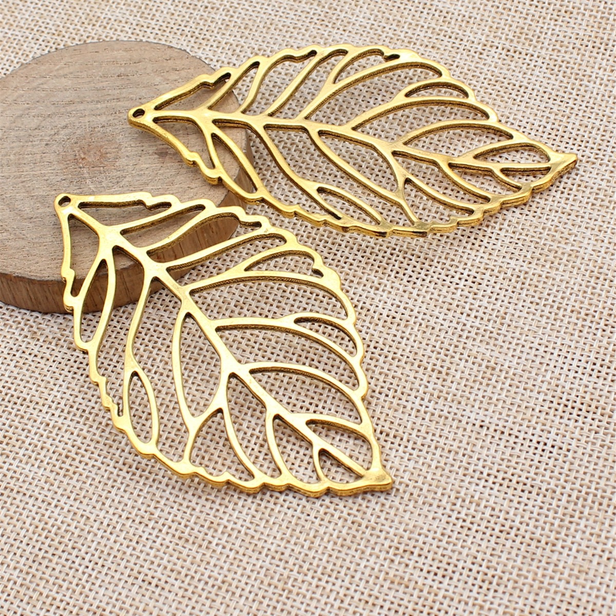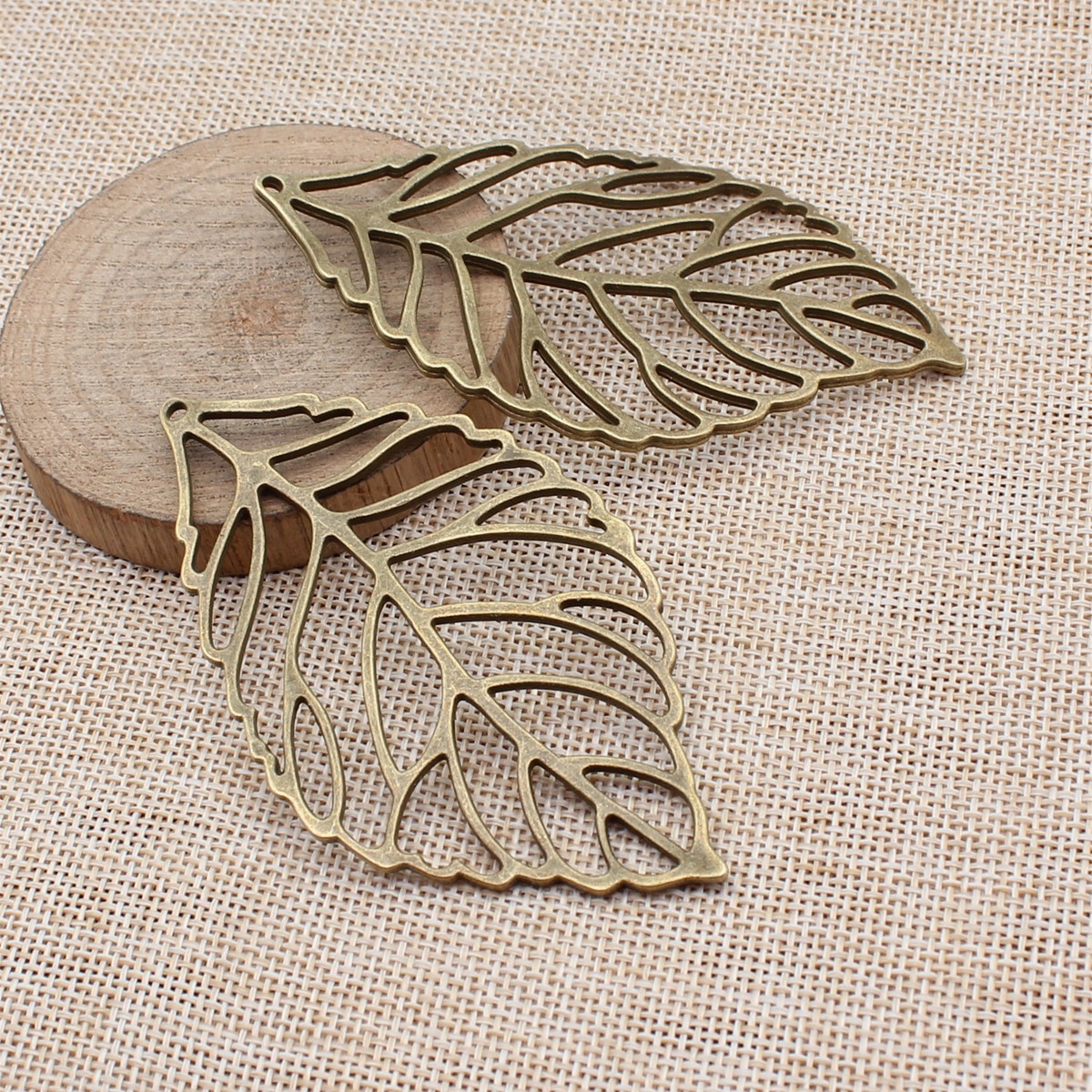 Pendentifs feuilles en alliage de zinc , Placage, DIY & creux, plus de couleurs à choisir, 90x50mm, Vendu par PC
