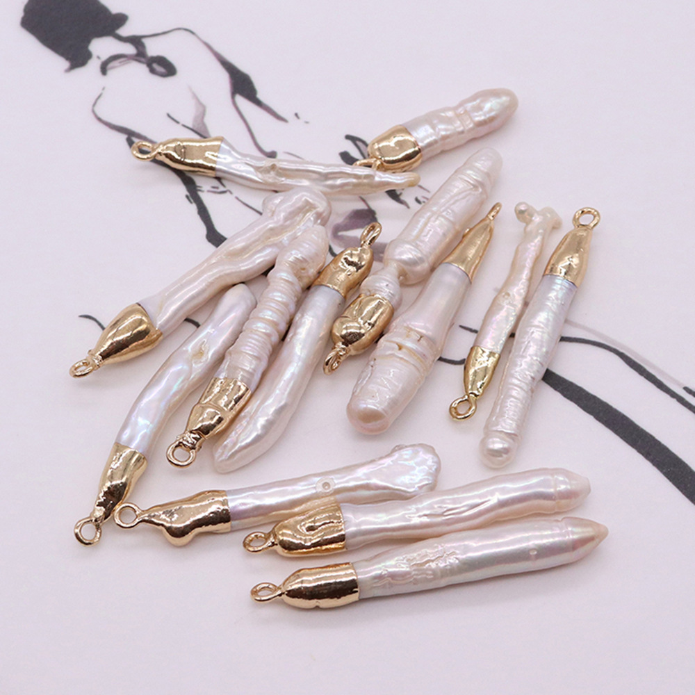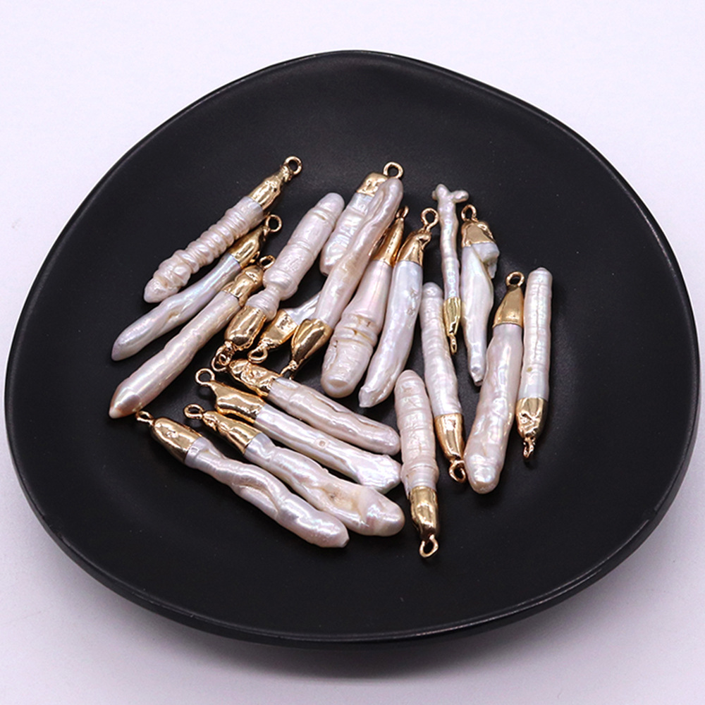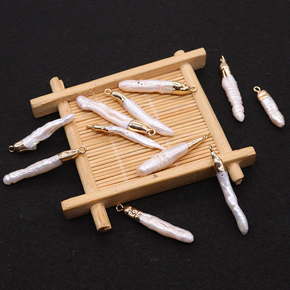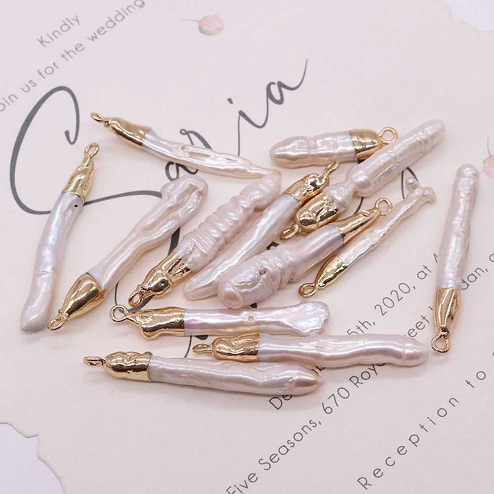 Pendentifs perlières d'eau douce, perle d'eau douce cultivée, Irrégulière, Placage de couleur d'or, DIY, 5x40mm, Vendu par PC