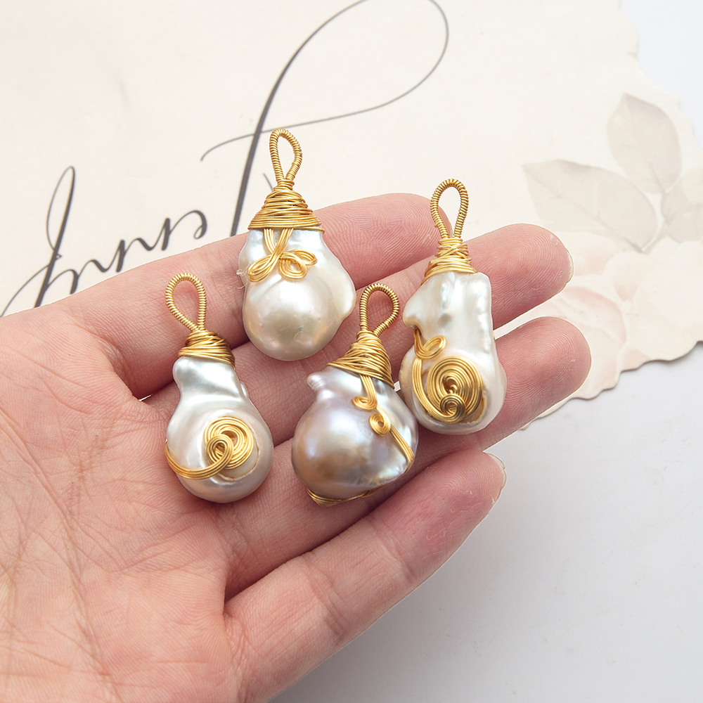 Pendentifs perlières d'eau douce, perle d'eau douce cultivée, avec Alliage, Placage de couleur d'or, bijoux de mode, blanc, 30x29mm, Vendu par PC