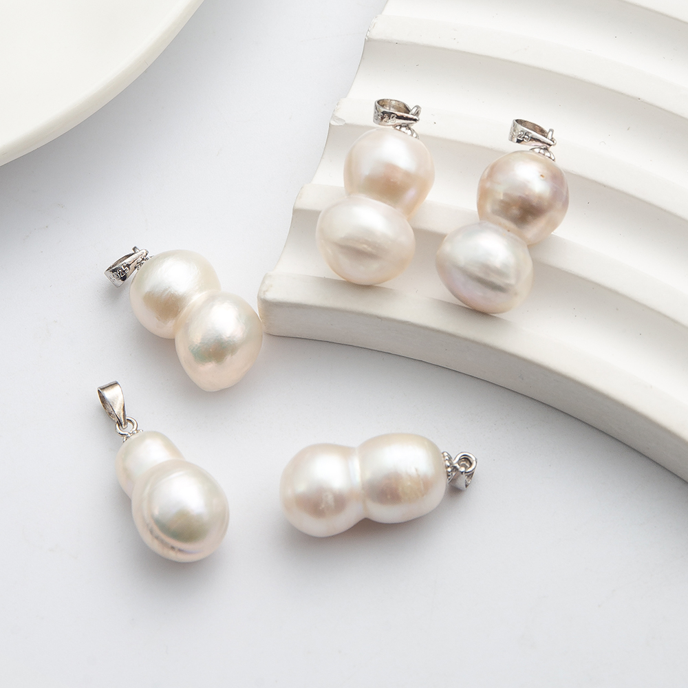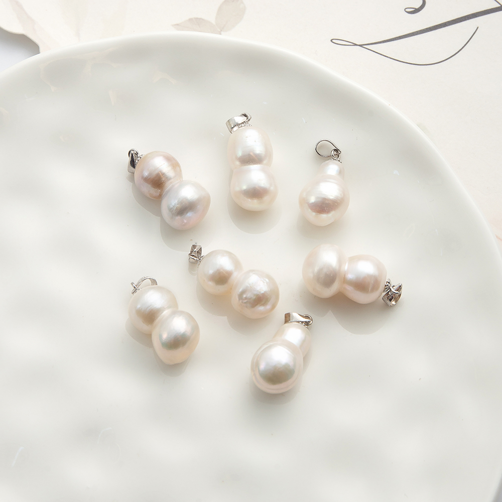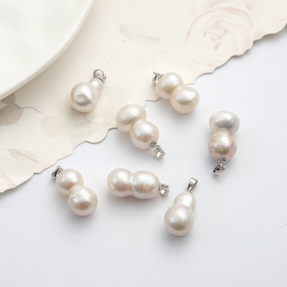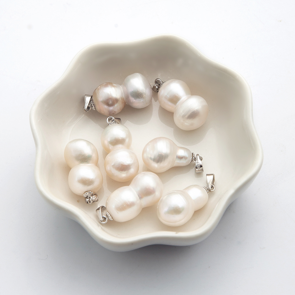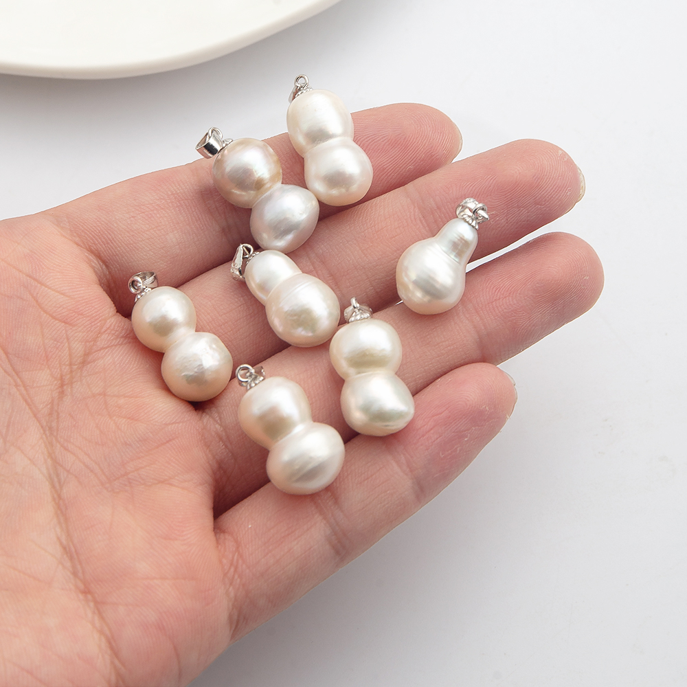 Pendentifs perlières d'eau douce, perle d'eau douce cultivée, avec Alliage, calebasse, Placage de couleur d'or, bijoux de mode, blanc, 16x18mm, Vendu par PC
