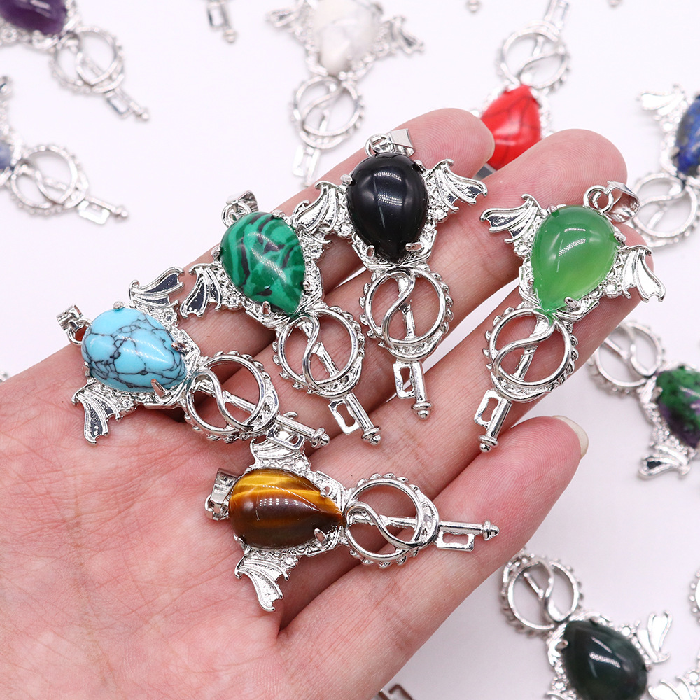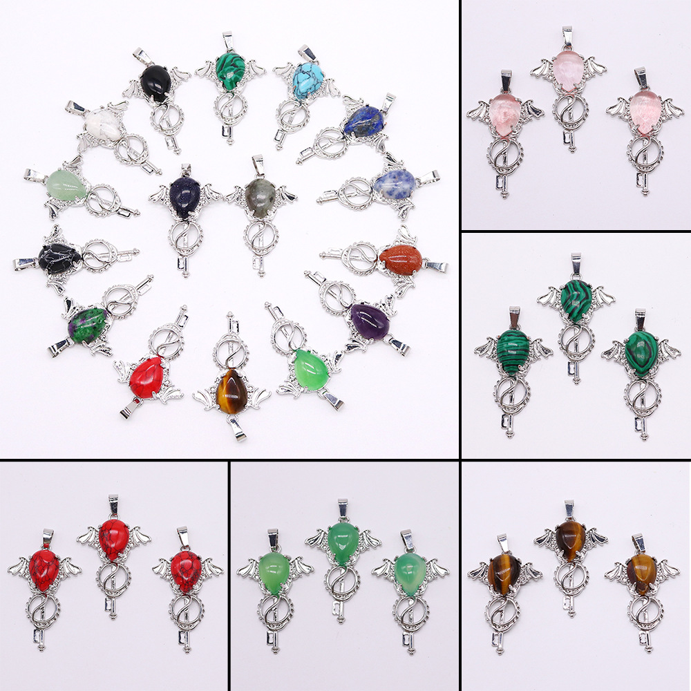 Pendentifs pierres gemmes mixtes , Pierre naturelle, avec alliage de zinc, DIY & différents matériaux pour le choix, plus de couleurs à choisir, 32x46mm, Vendu par PC