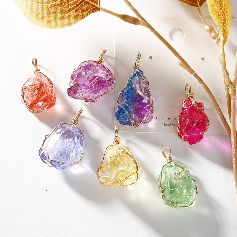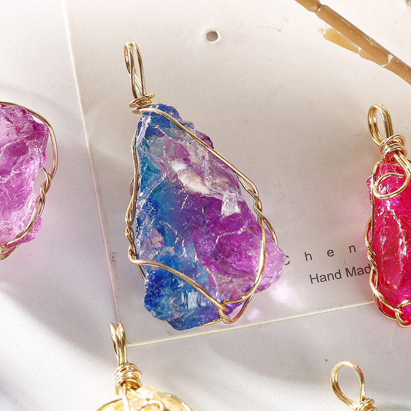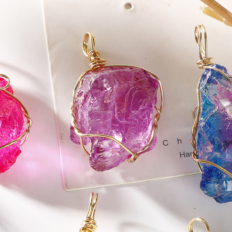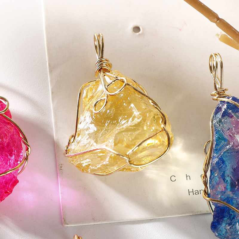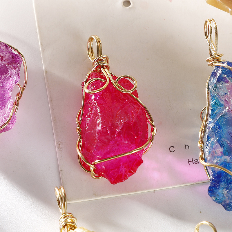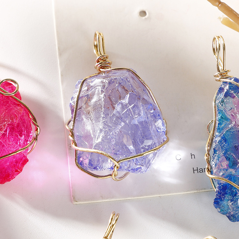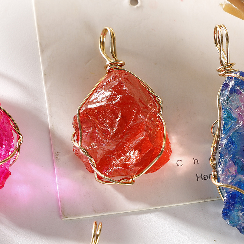 Pendentifs quartz naturel, Cristal naturel, avec caution de fer, pepite, Placage de couleur d'or, différents matériaux pour le choix - Environ Vendu par PC