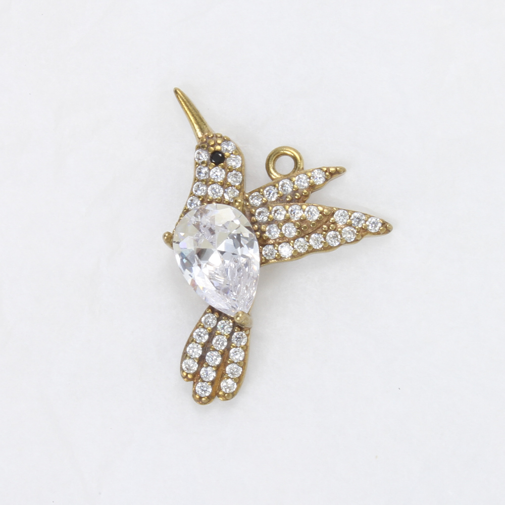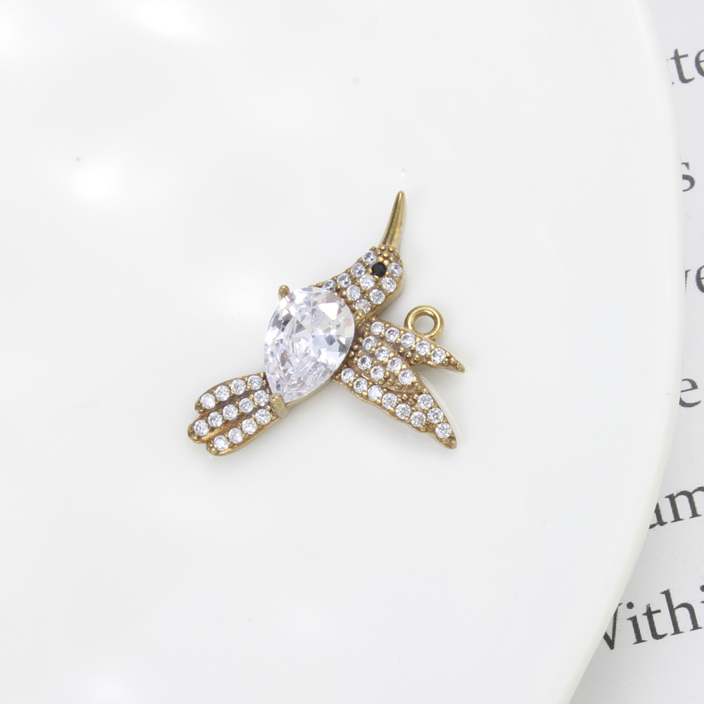 Pendentifs strass en laiton, oiseau, Placage, DIY & avec strass, doré, 27x19.3x4.7mm, Vendu par PC