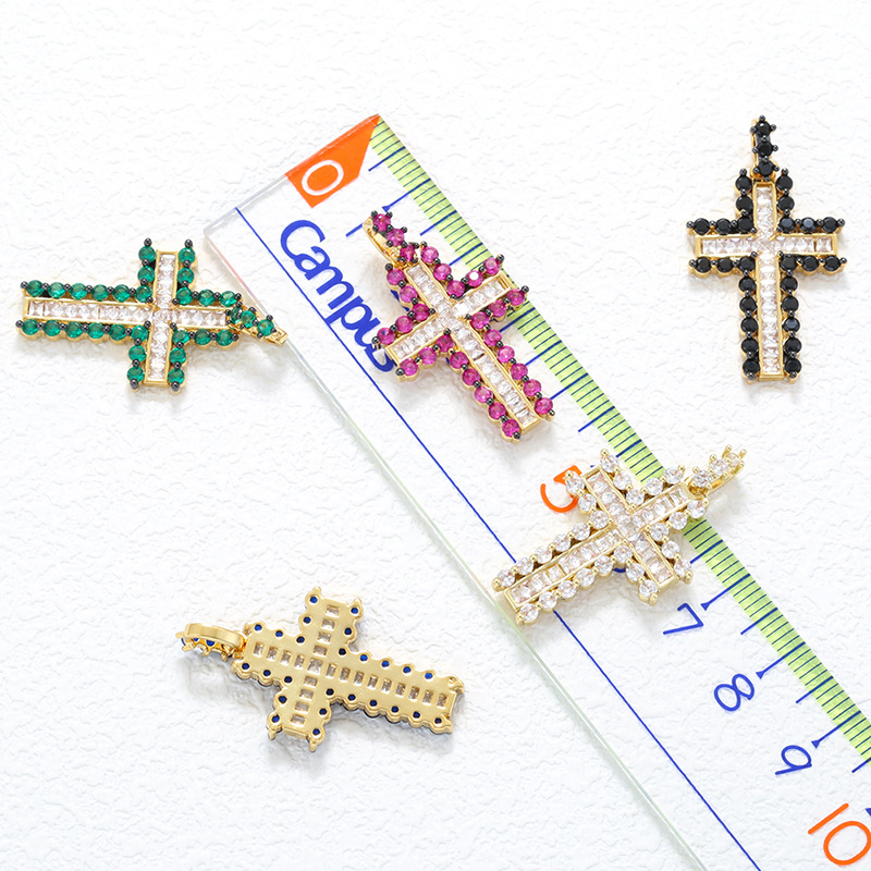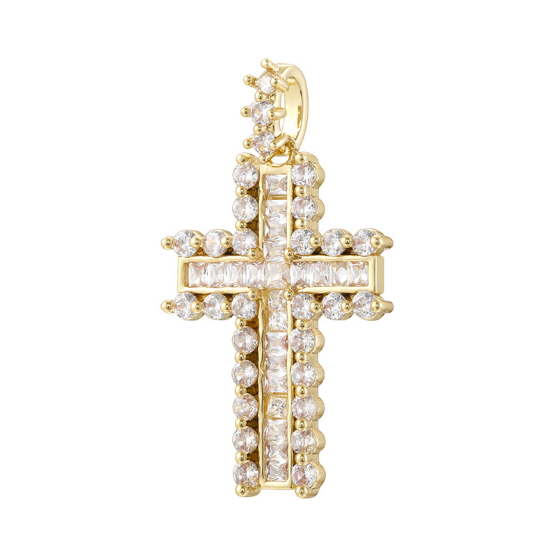 Pendentifs strass en laiton, croix, Placage de couleur d'or, DIY & avec strass, plus de couleurs à choisir, 18x32mm, Vendu par PC