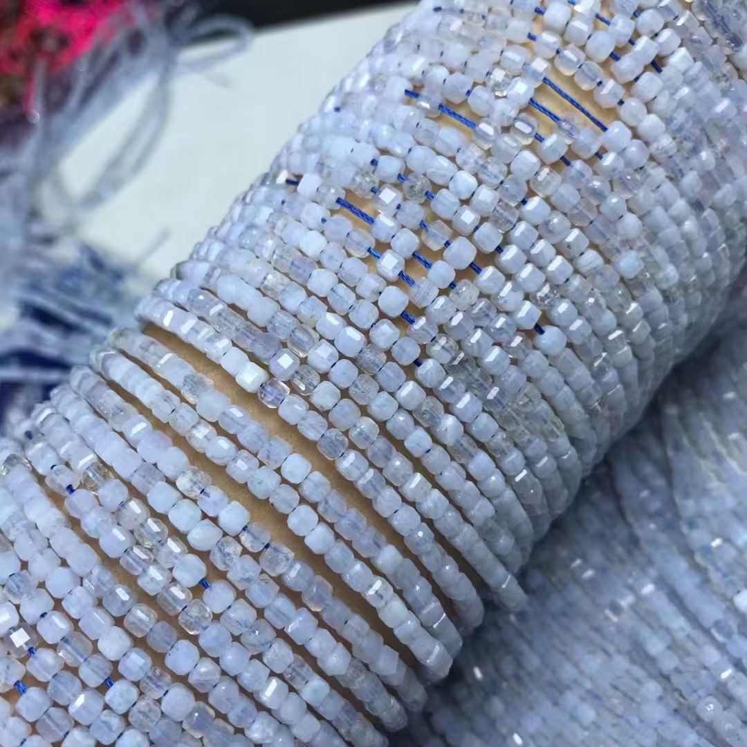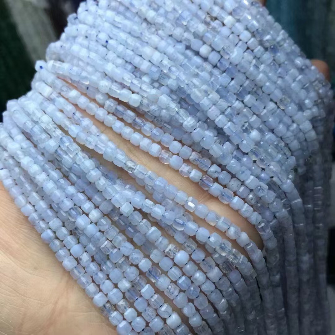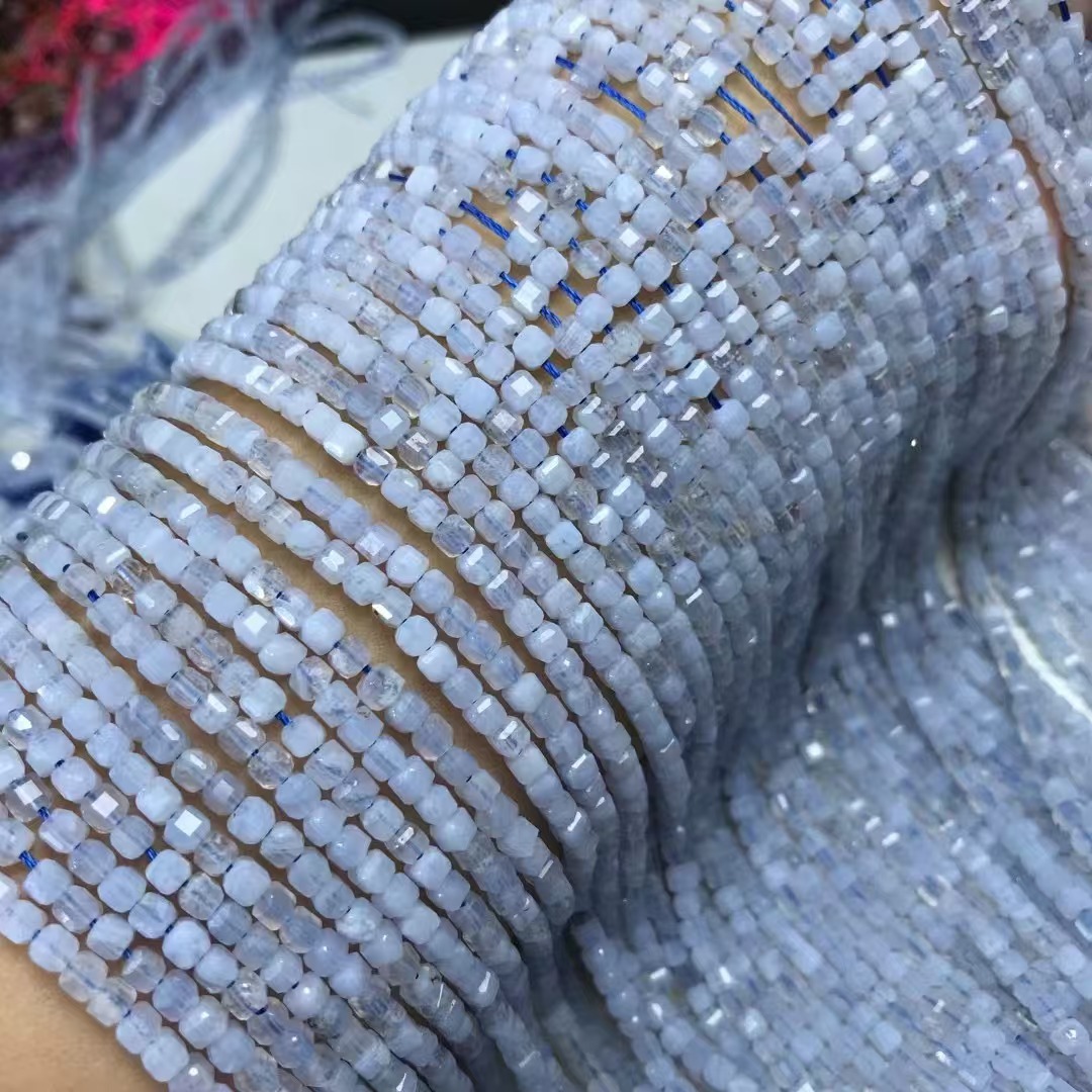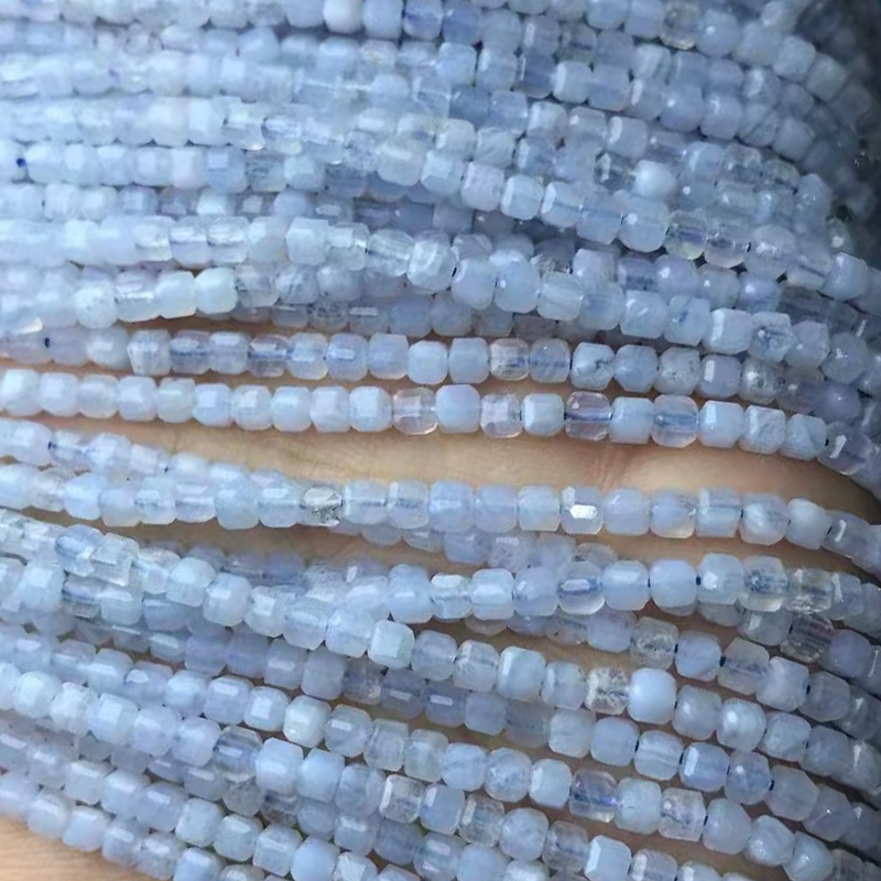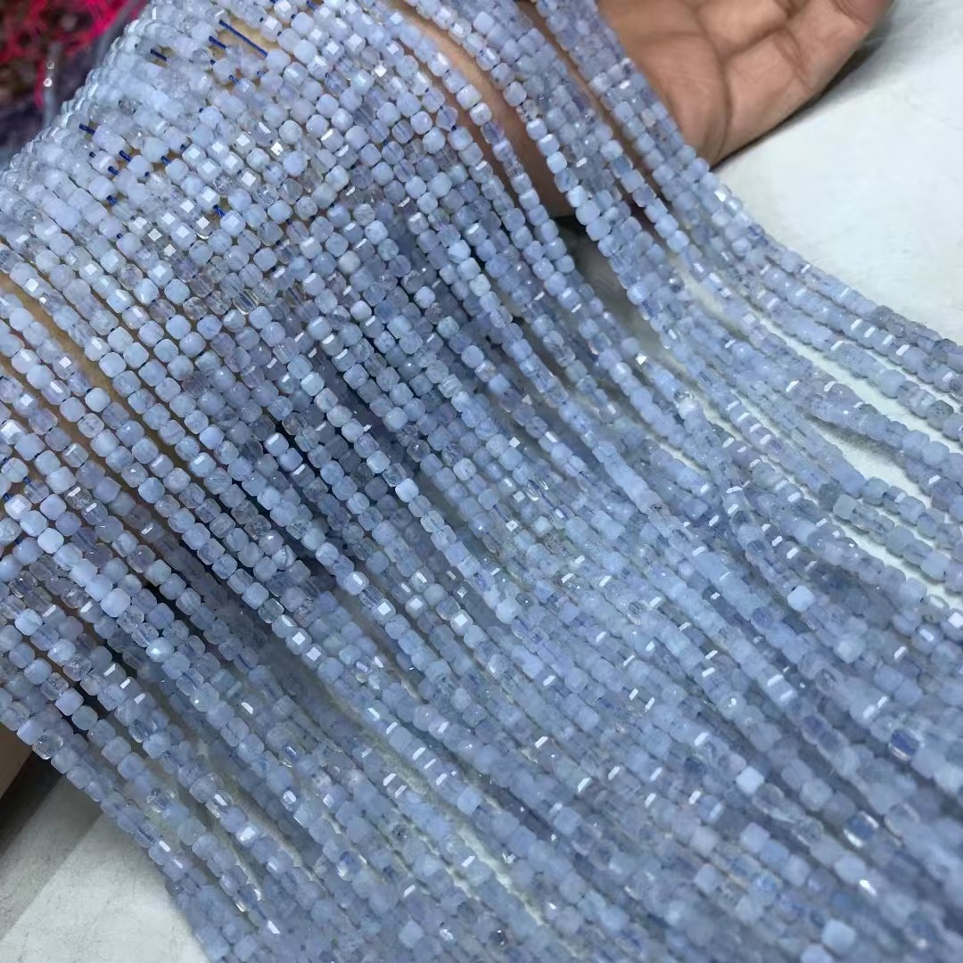 Perle Agate bleue naturelle, cadre, DIY, 3x3mm, Longueur:Environ 35-40 cm, Vendu par brin