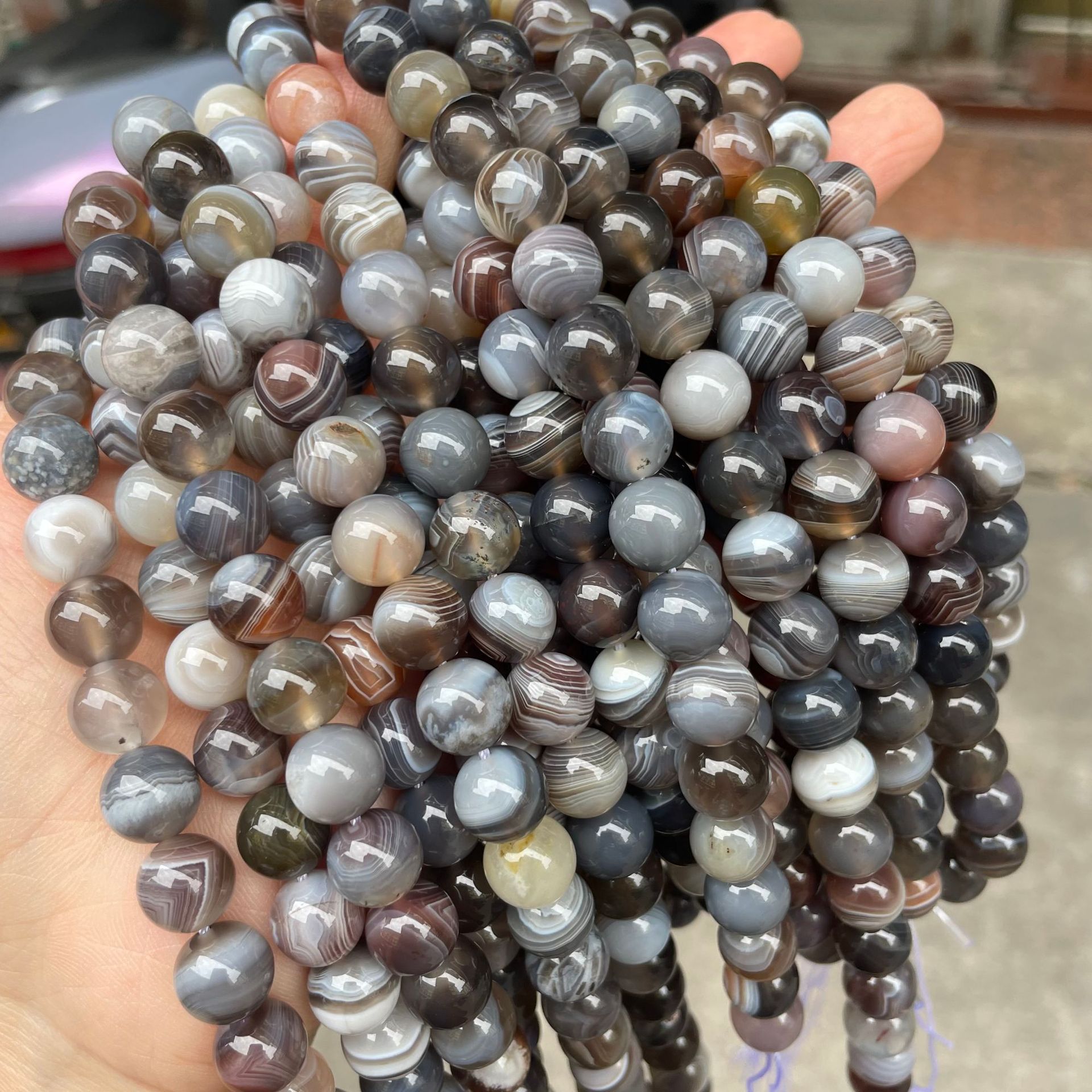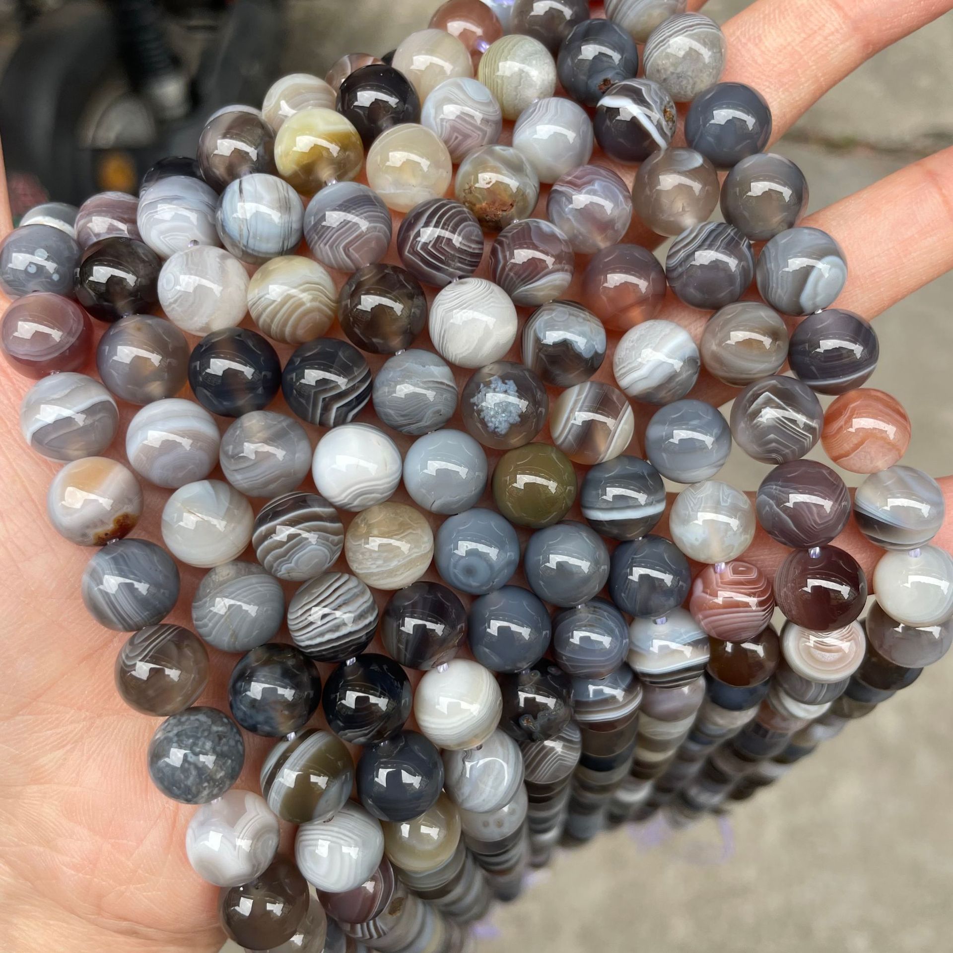 Perle agate Botswana naturelle, Rond, DIY & normes différentes pour le choix, couleurs mélangées, Vendu par brin