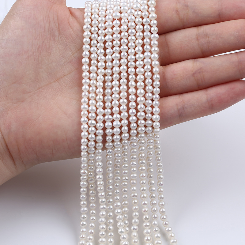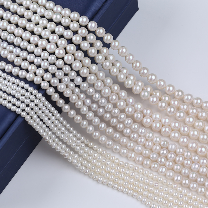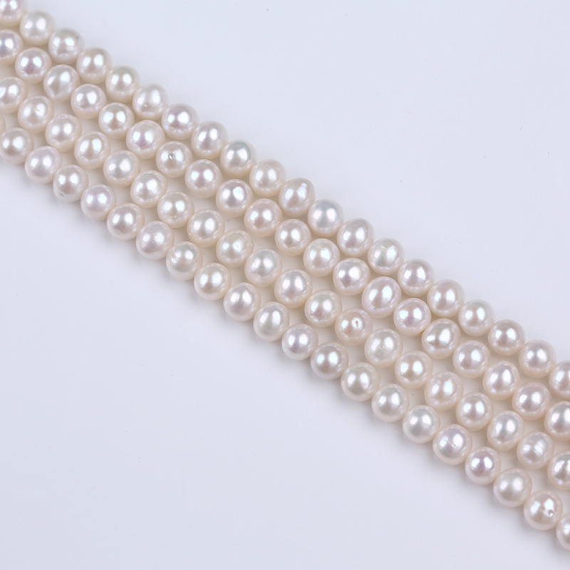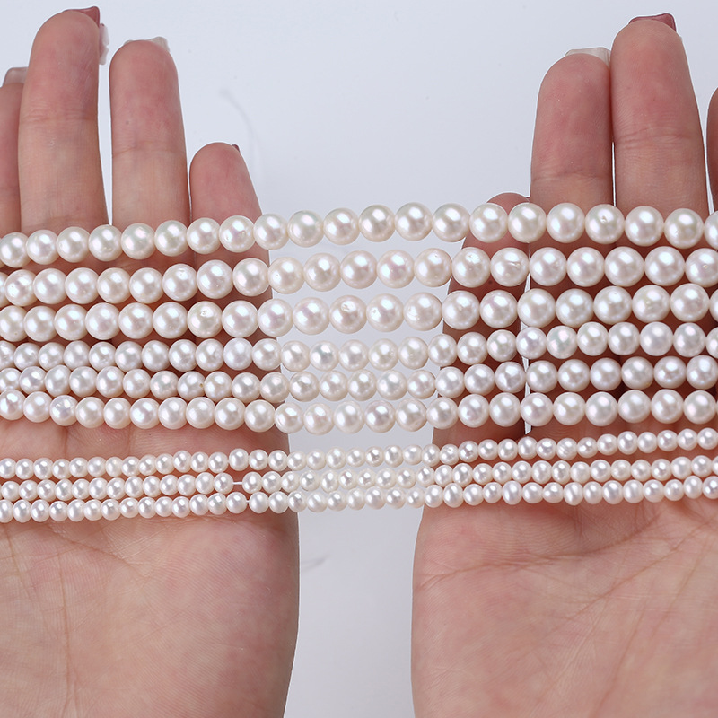 Perle comme Pommes de terre perles d'eau douce, perle d'eau douce cultivée, Légèrement rond, DIY, blanc, 3-9mm, Longueur:37 cm, Vendu par brin