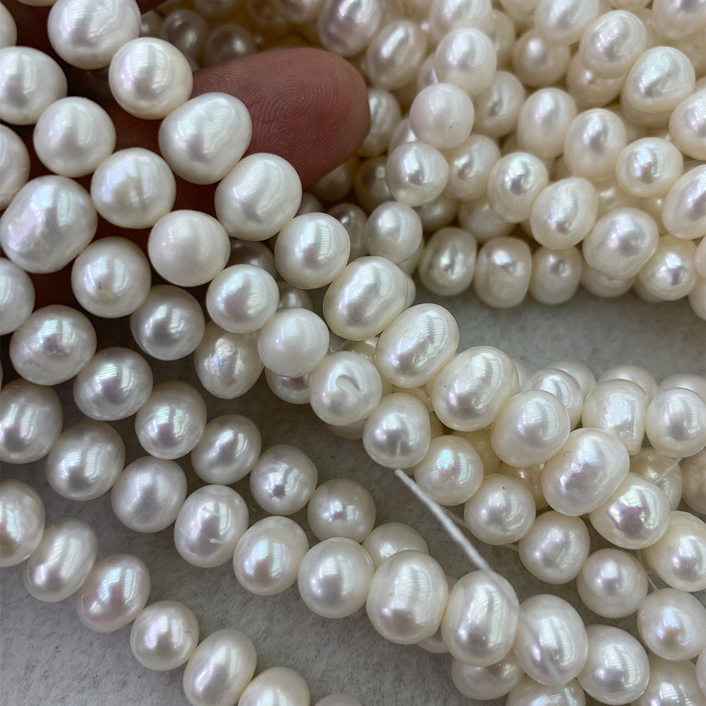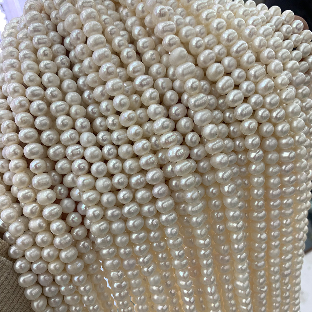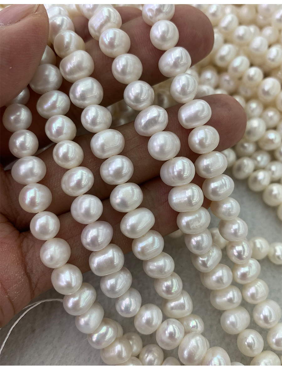 Perle comme Pommes de terre perles d'eau douce, perle d'eau douce cultivée, pomme de terre, DIY, blanc, 7-8MM, Longueur:36.5 cm, 54PC/brin, Vendu par brin