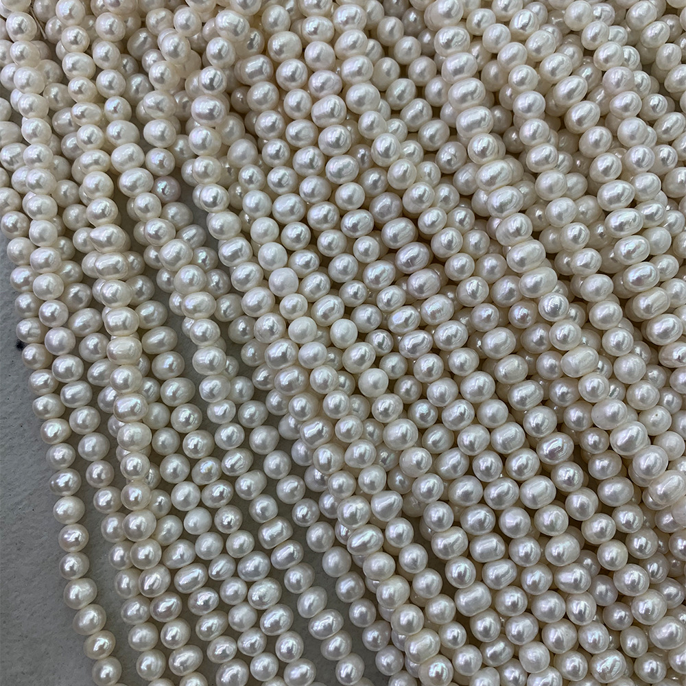 Perle comme Pommes de terre perles d'eau douce, perle d'eau douce cultivée, pomme de terre, naturel, blanc, 4-5mm Environ 0.8mm Environ 15.5 pouce, Vendu par brin