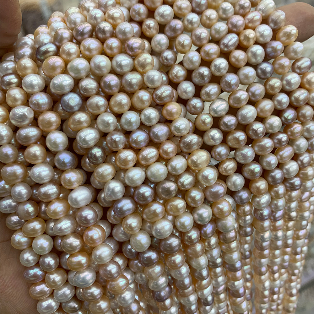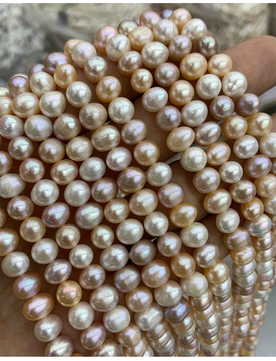 Perle comme Pommes de terre perles d'eau douce, perle d'eau douce cultivée, pomme de terre, DIY, couleurs mélangées, 7-8MM, Longueur:37 cm, Vendu par brin