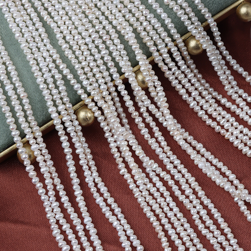 Perle comme Pommes de terre perles d'eau douce, perle d'eau douce cultivée, Légèrement rond, DIY, blanc, 2-2.5mm, Longueur:36 cm, Vendu par brin