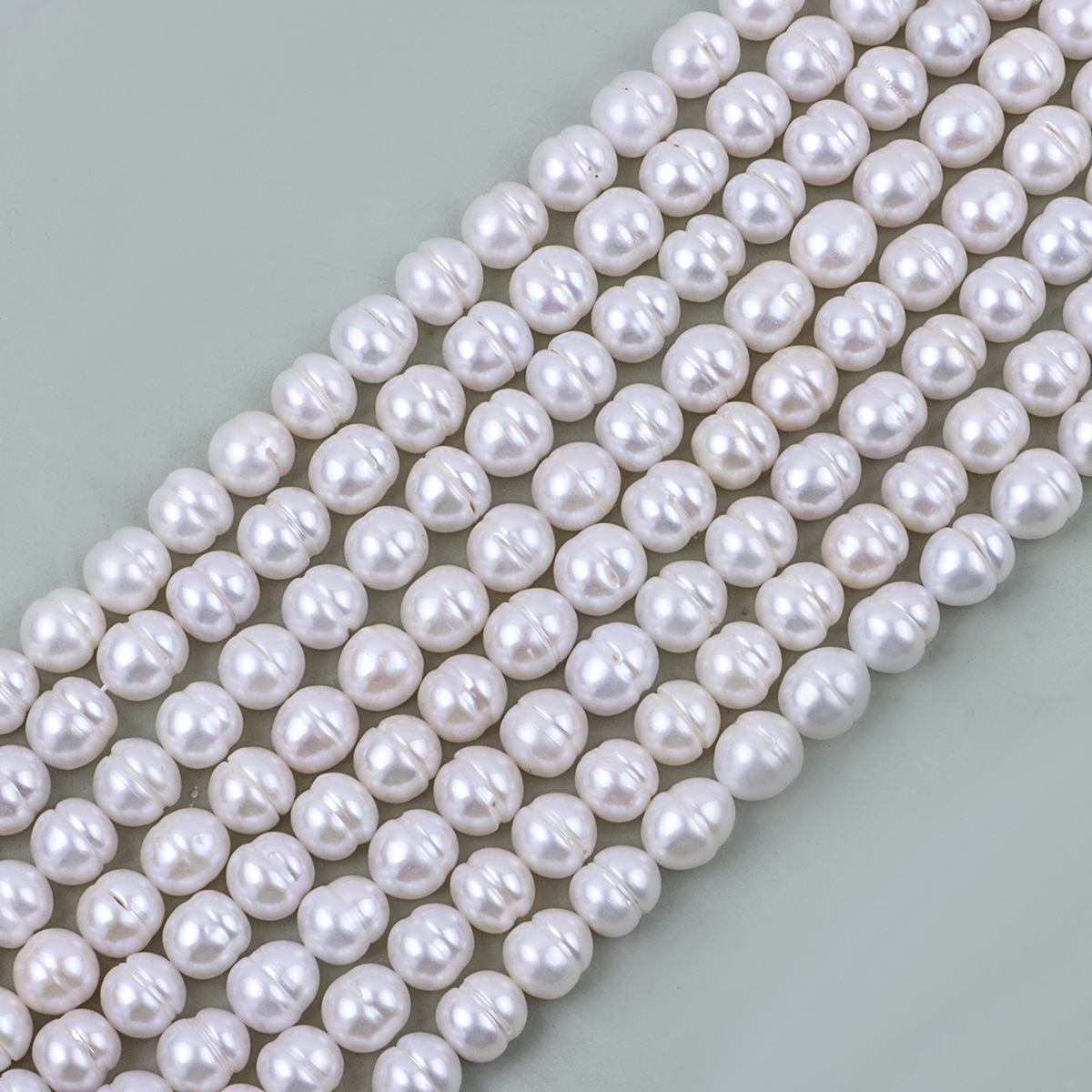 Perle comme Pommes de terre perles d'eau douce, perle d'eau douce cultivée, pomme de terre, naturel, blanc, grade A, 7-8mm Environ 0.8mm pouce, Vendu par brin