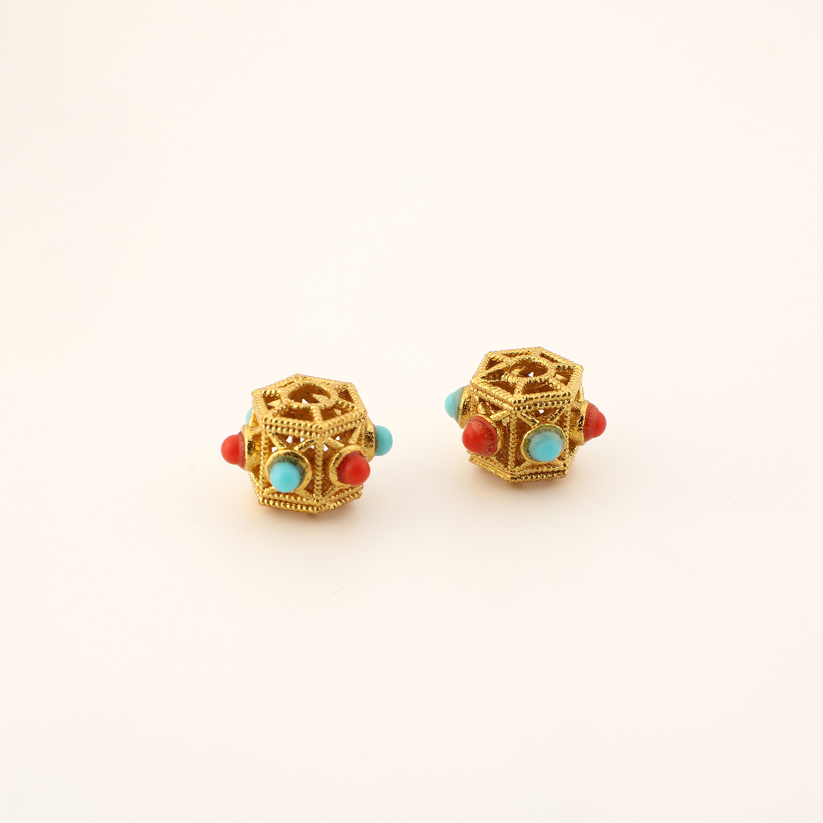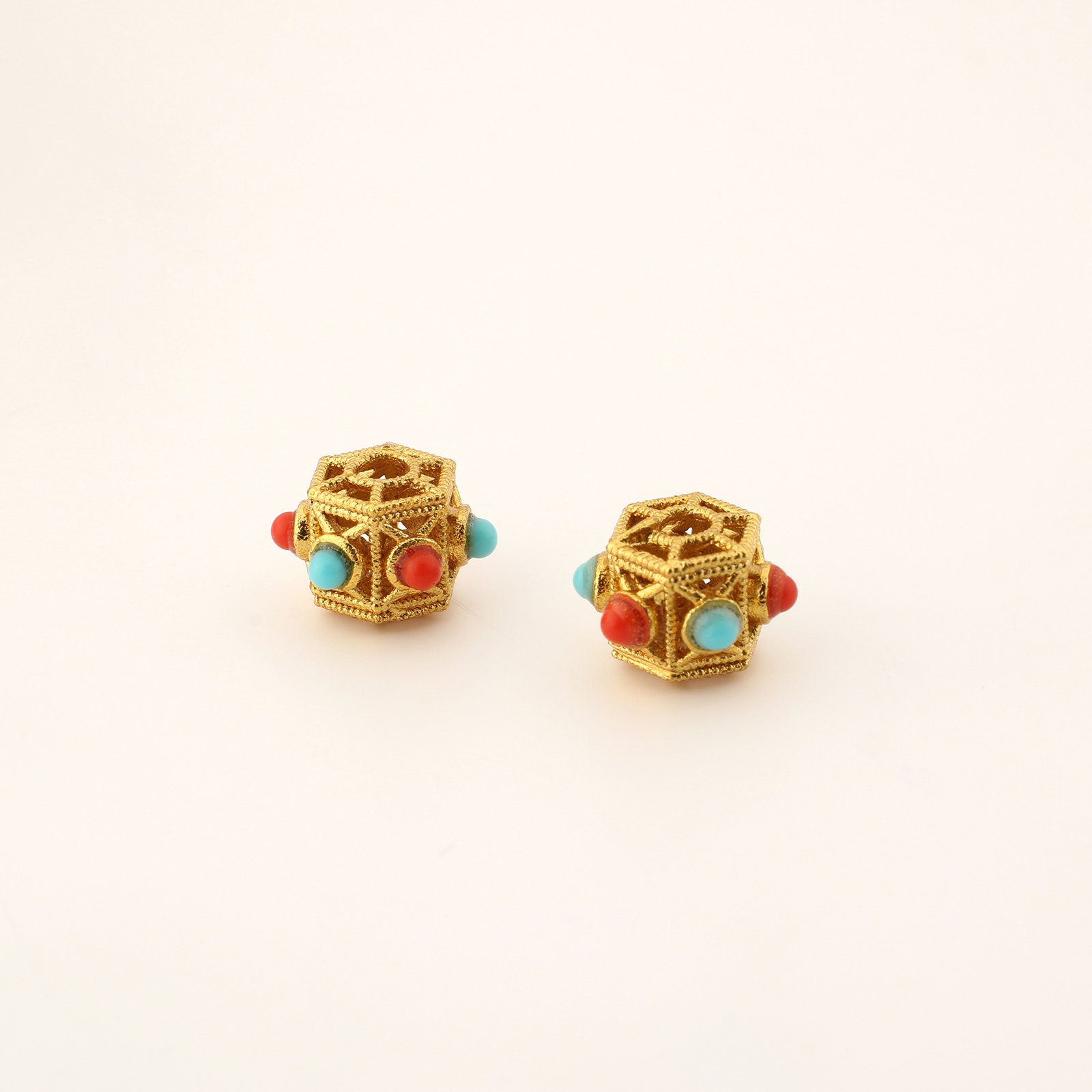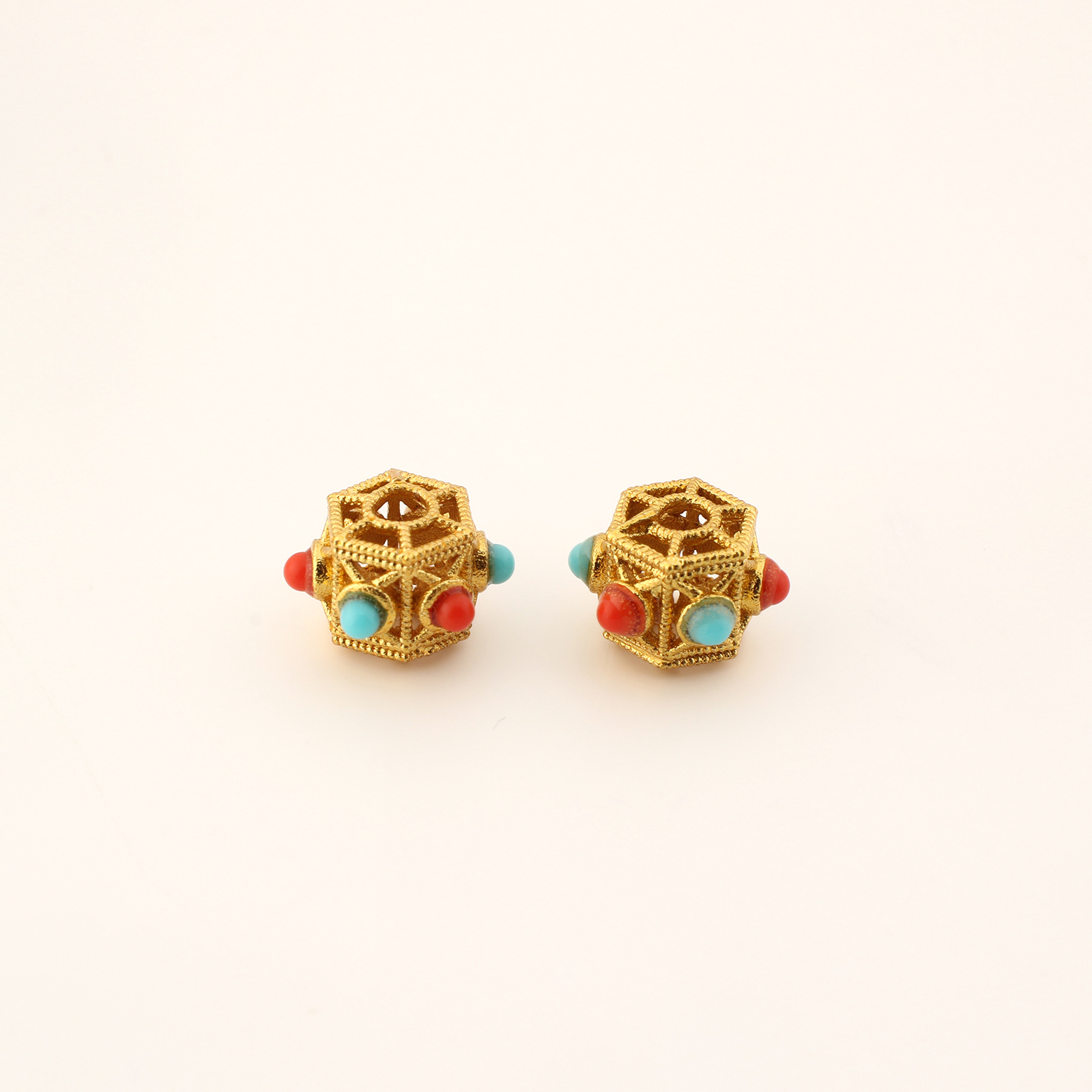 Perle creuse en laiton, avec plastique, DIY & creux, doré, 8x11x11mm, Vendu par PC