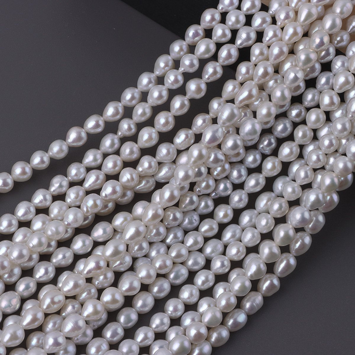 Perle de culture d'eau douce forme goutte, perle d'eau douce cultivée, larme, DIY, blanc, About:5-6mm, Longueur:37 cm, Vendu par brin