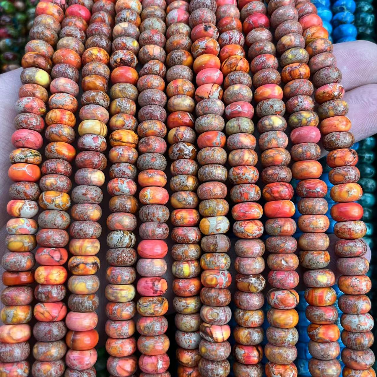 Perle empereur Pierre , Jaspe d'impression, abaque, Naturel & DIY, plus de couleurs à choisir, 5x8mm, Environ 78PC/brin, Vendu par brin