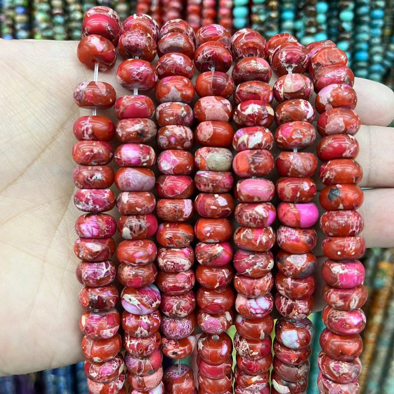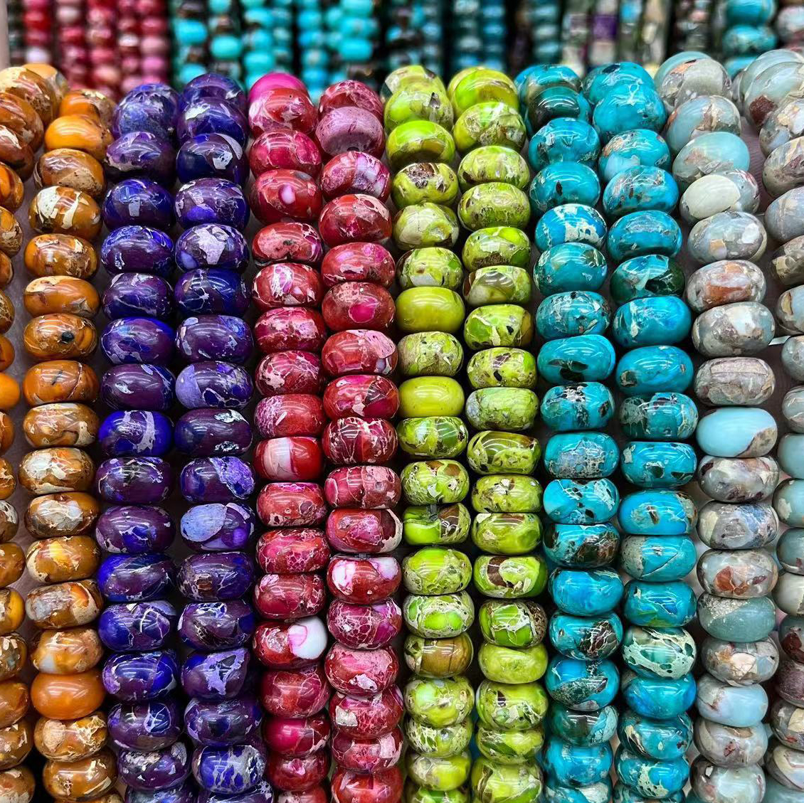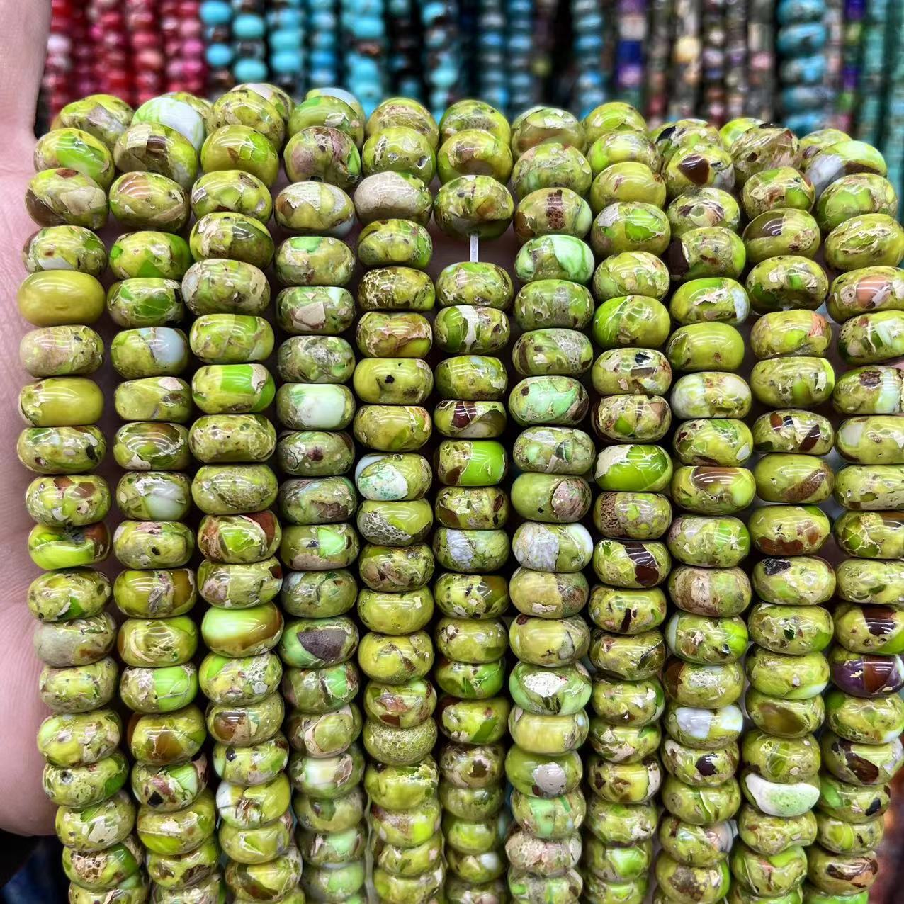 Perle empereur Pierre , Jaspe d'impression, abaque, naturel & DIY, plus de couleurs à choisir, 6x10mm, Environ 63PC/brin, Vendu par brin