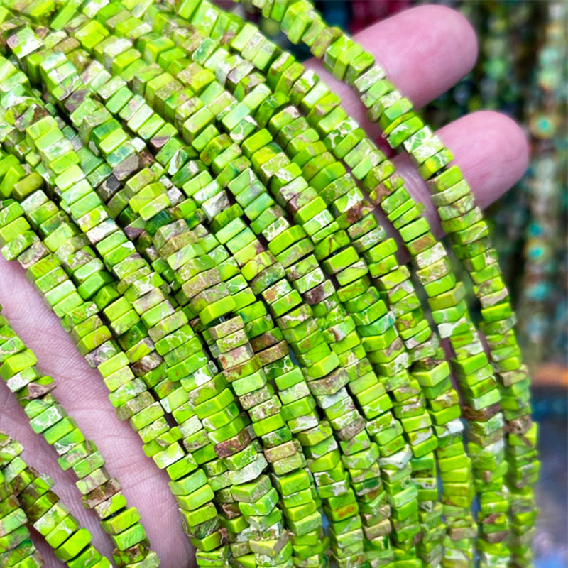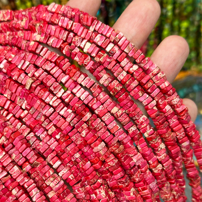 Perle empereur Pierre , Jaspe d'impression, Squaredelle, Naturel & DIY, plus de couleurs à choisir, 2x4mm, Longueur:Environ 38 cm, Vendu par brin