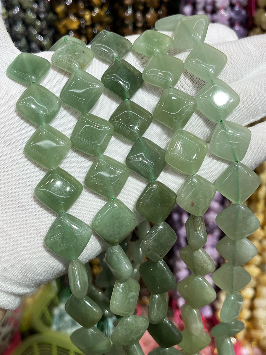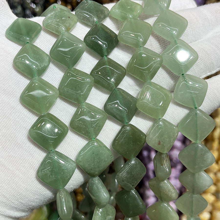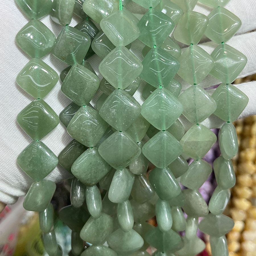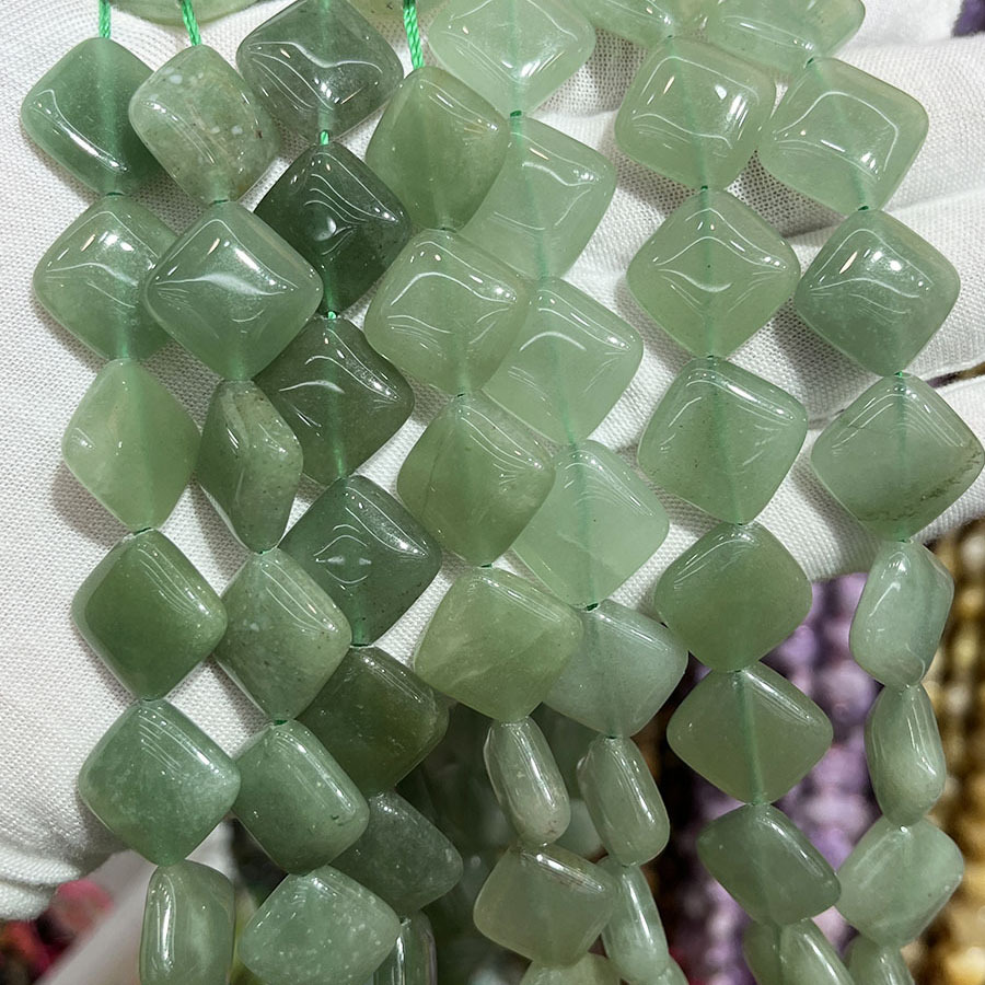 Perle en aventurine verte, Losange, DIY, vert, 15mm, Longueur:38 cm, Vendu par brin