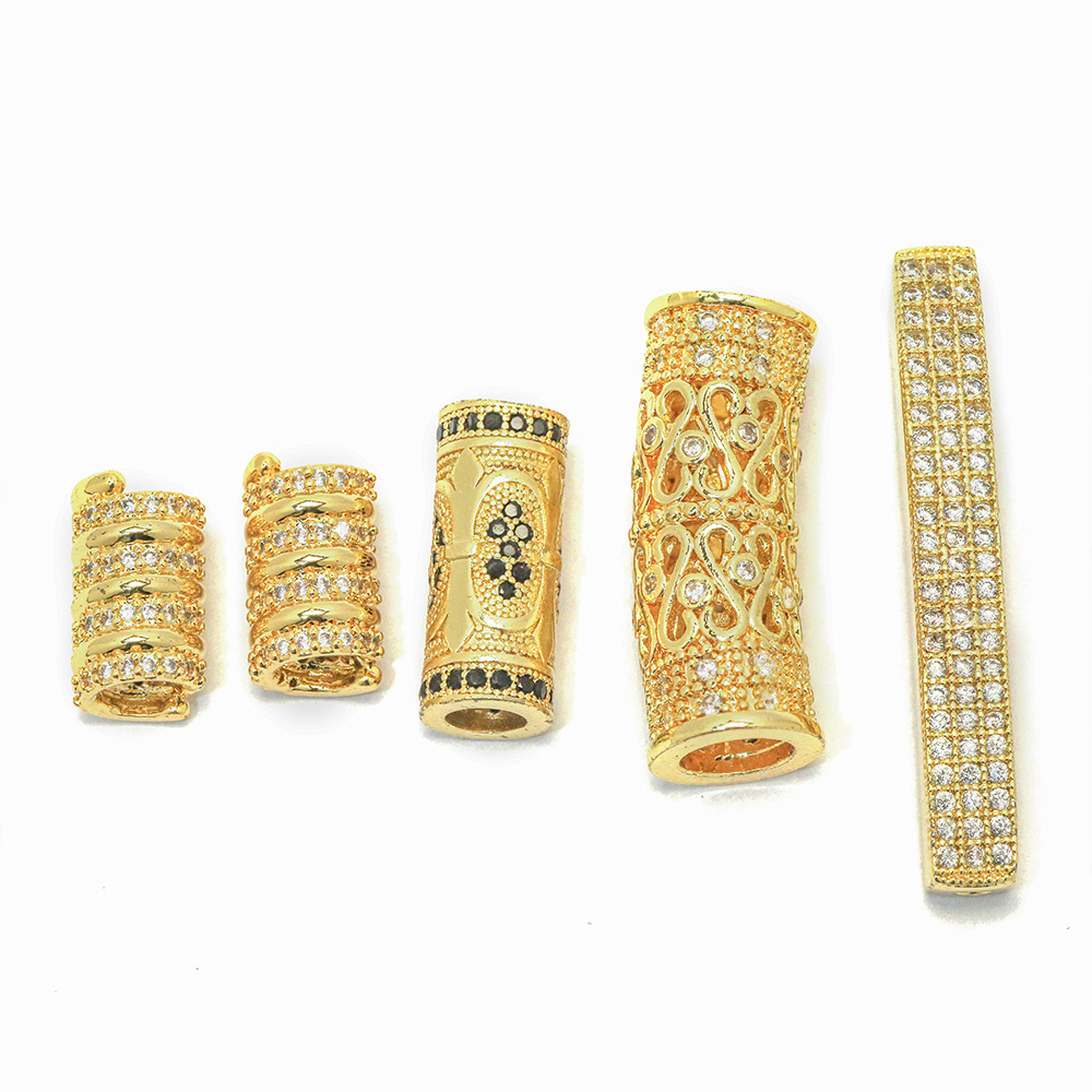 Perle tube en laiton, Placage de couleur d'or, DIY & styles différents pour le choix & pavé de micro zircon, plus de couleurs à choisir, Vendu par PC