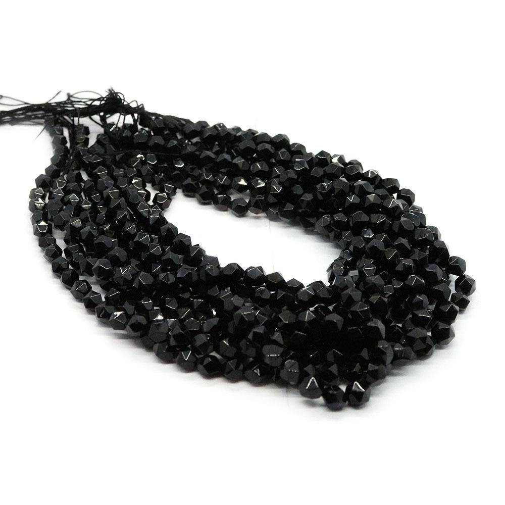 Perles Agates Noires naturelles, agate noire, Rond, facettes, 3mm Environ 0.5mm Environ 15 pouce, Environ Vendu par brin