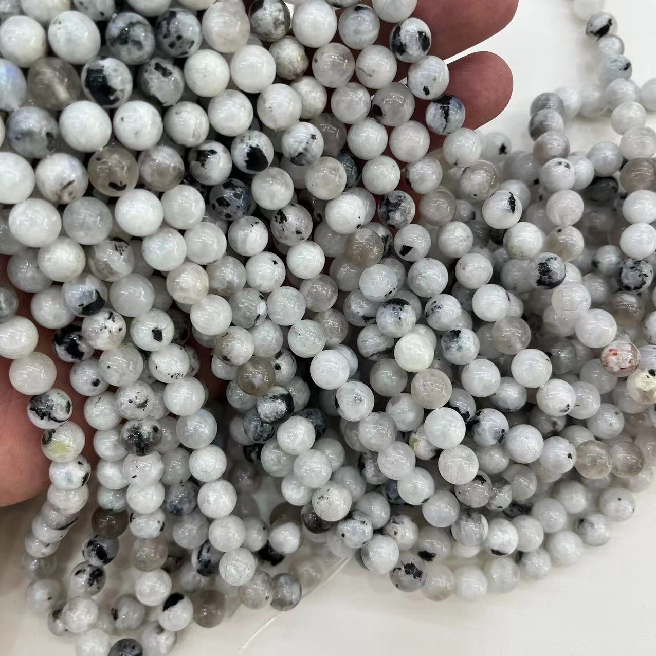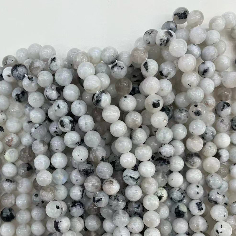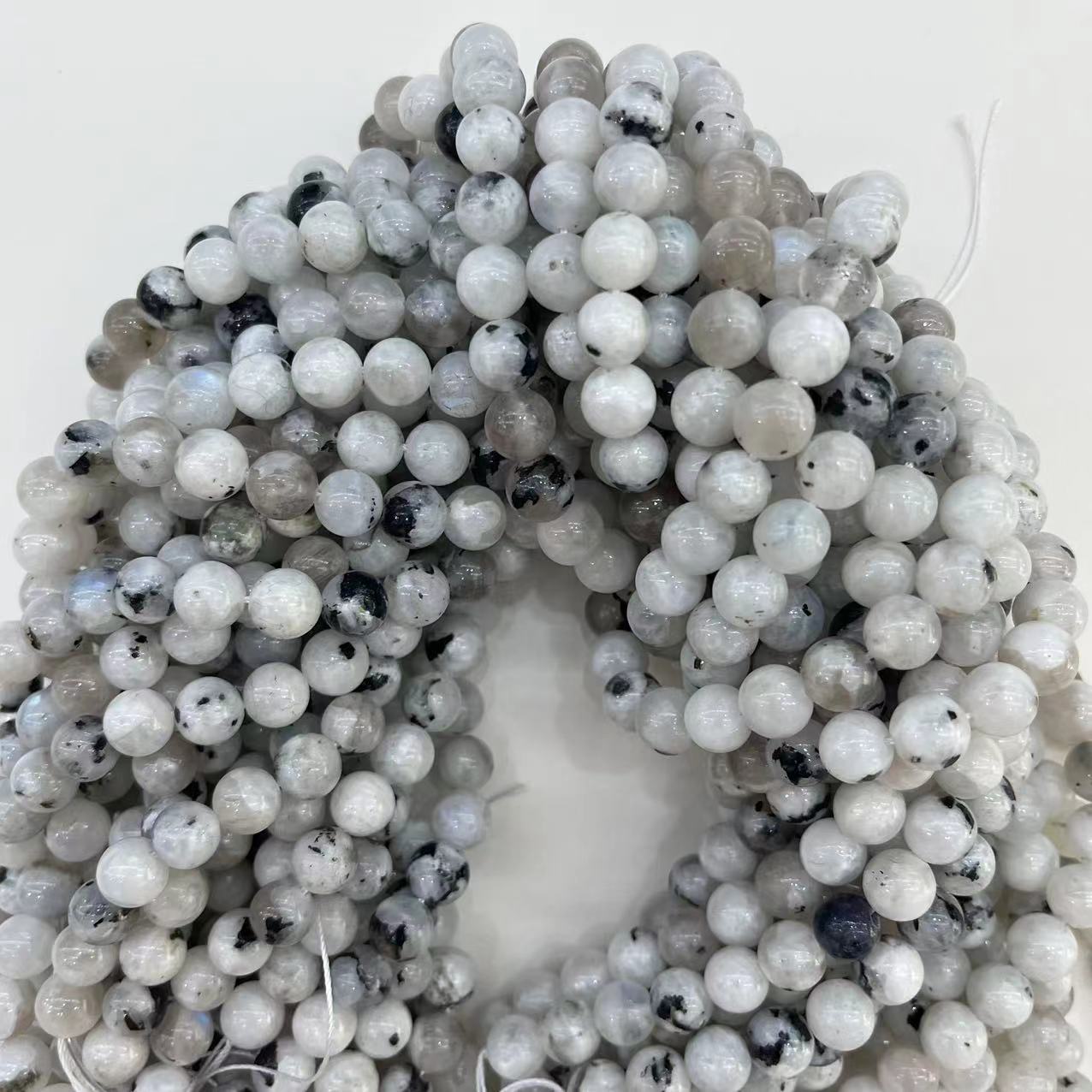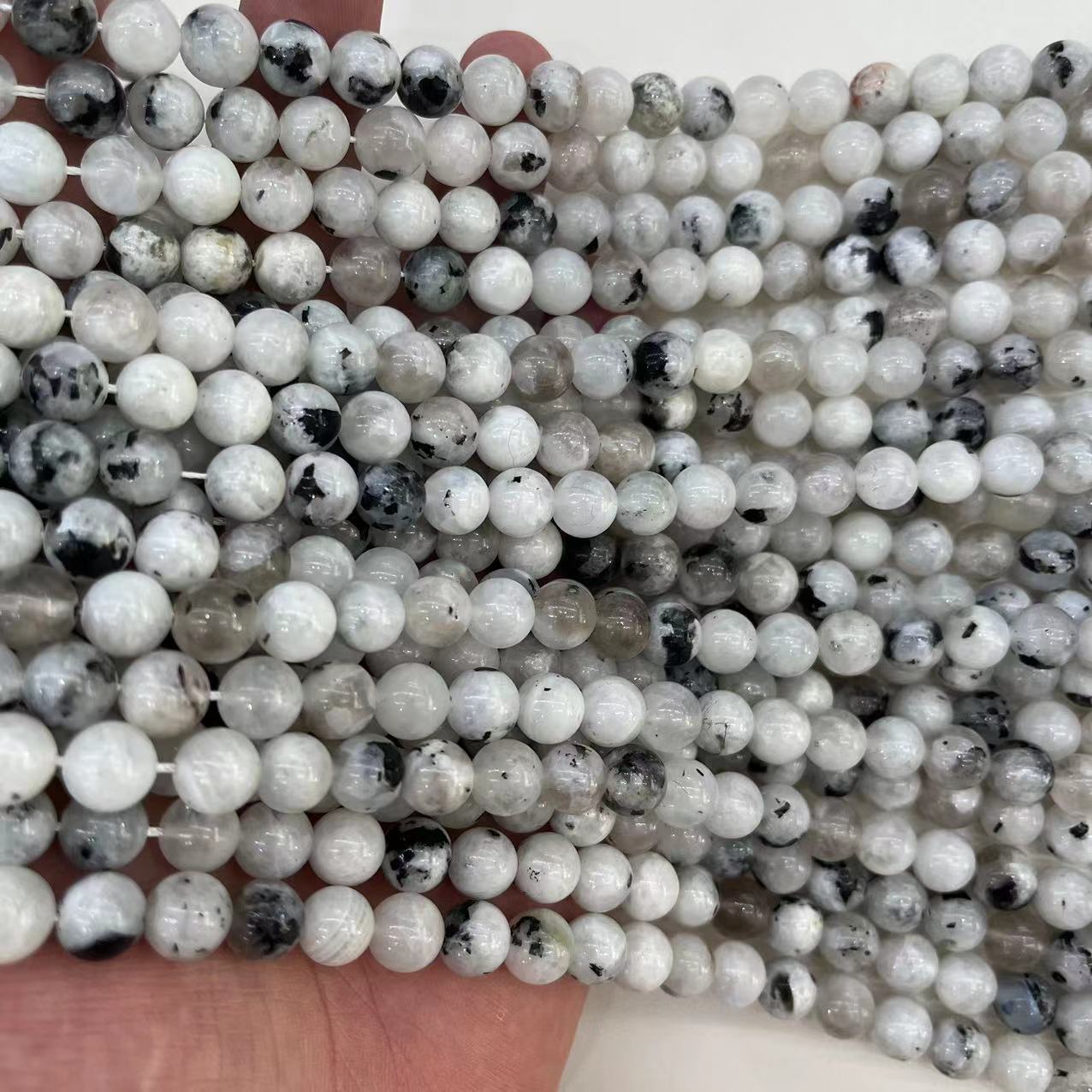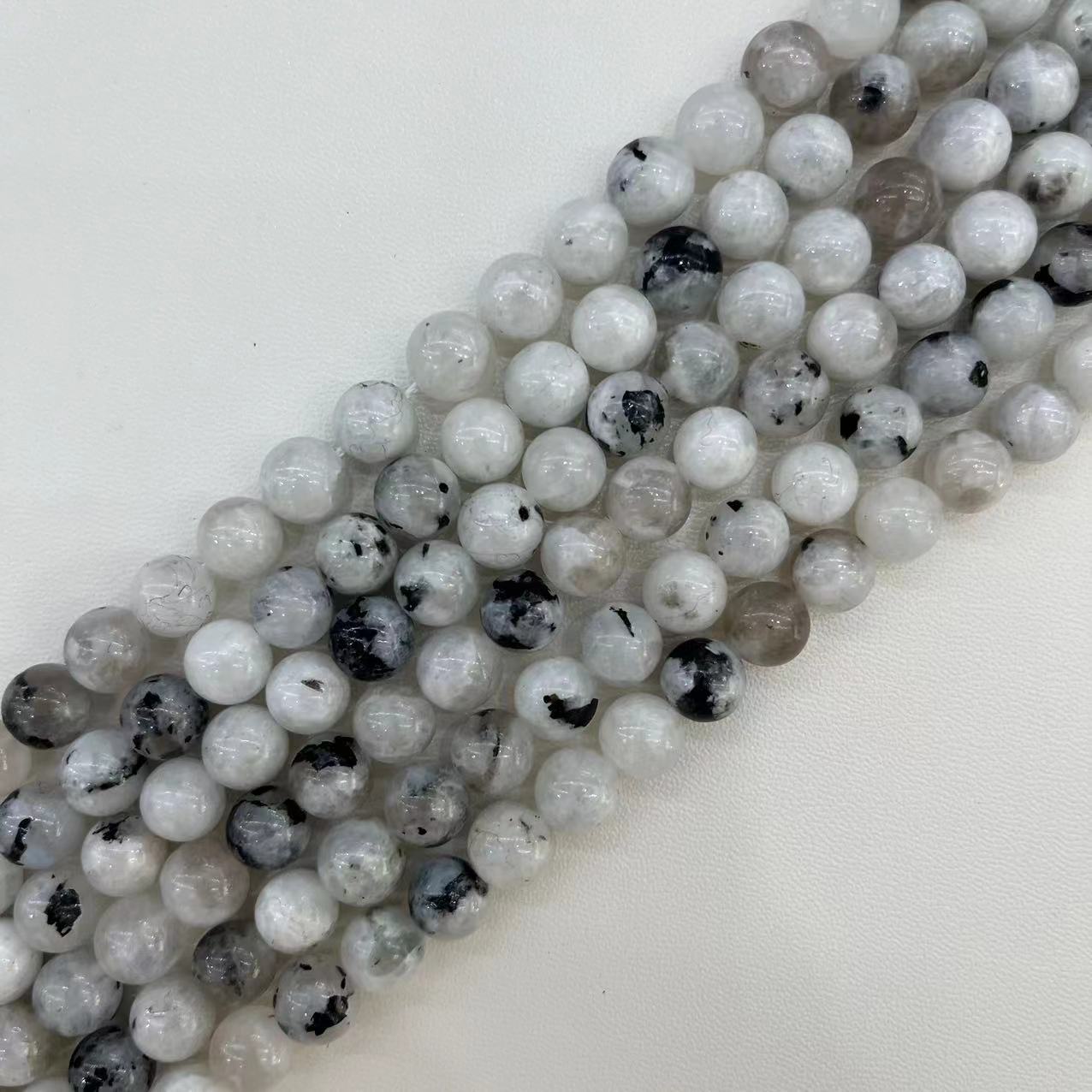Perles Pierre de lune, Moonstone, Rond, naturel & DIY & normes différentes pour le choix, blanc et noir, Vendu par brin