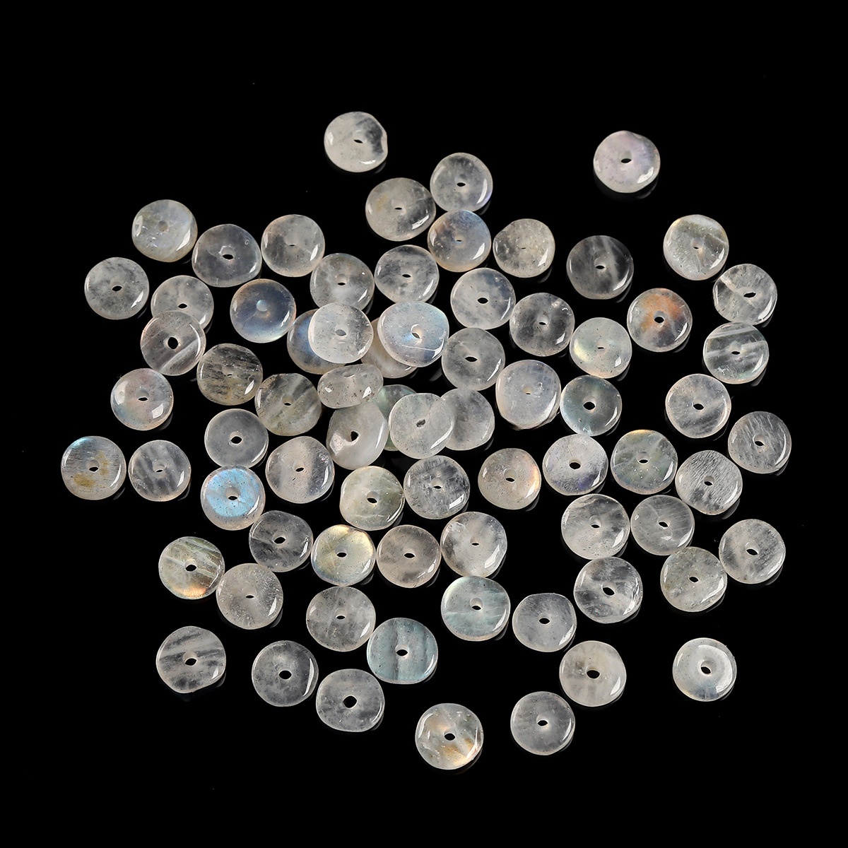 Perles Pierre de lune, Plat rond pouce Vendu par brin
