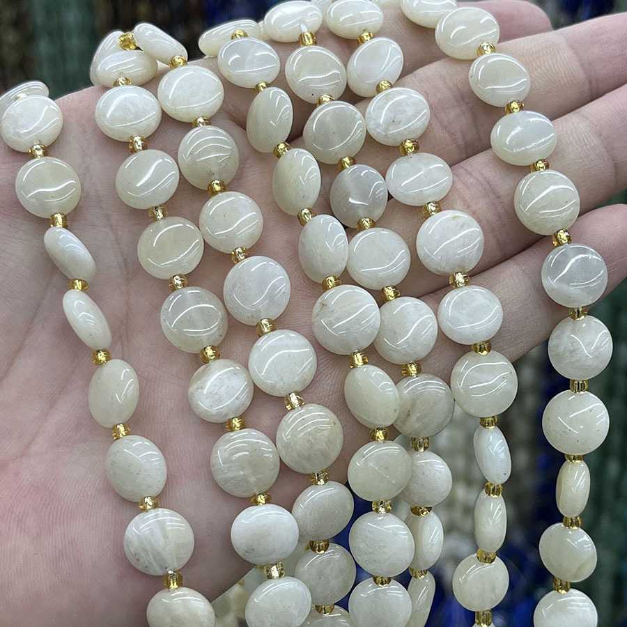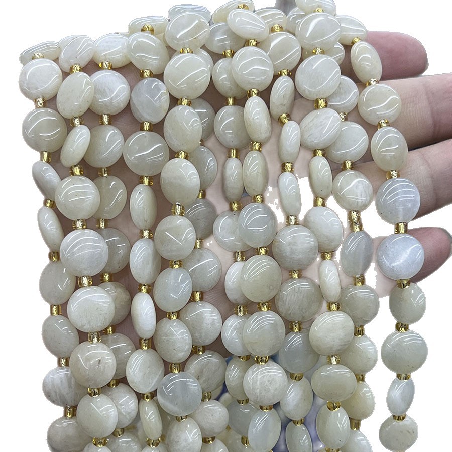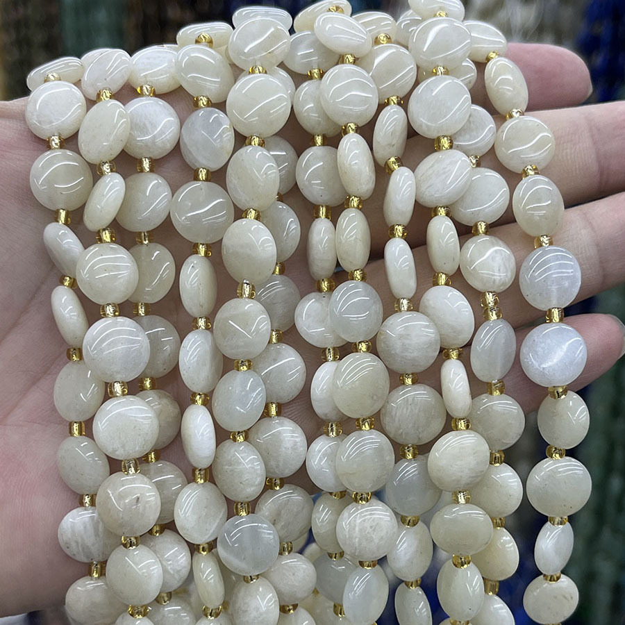 Perles Pierre de lune, Plat rond pouce Vendu par brin