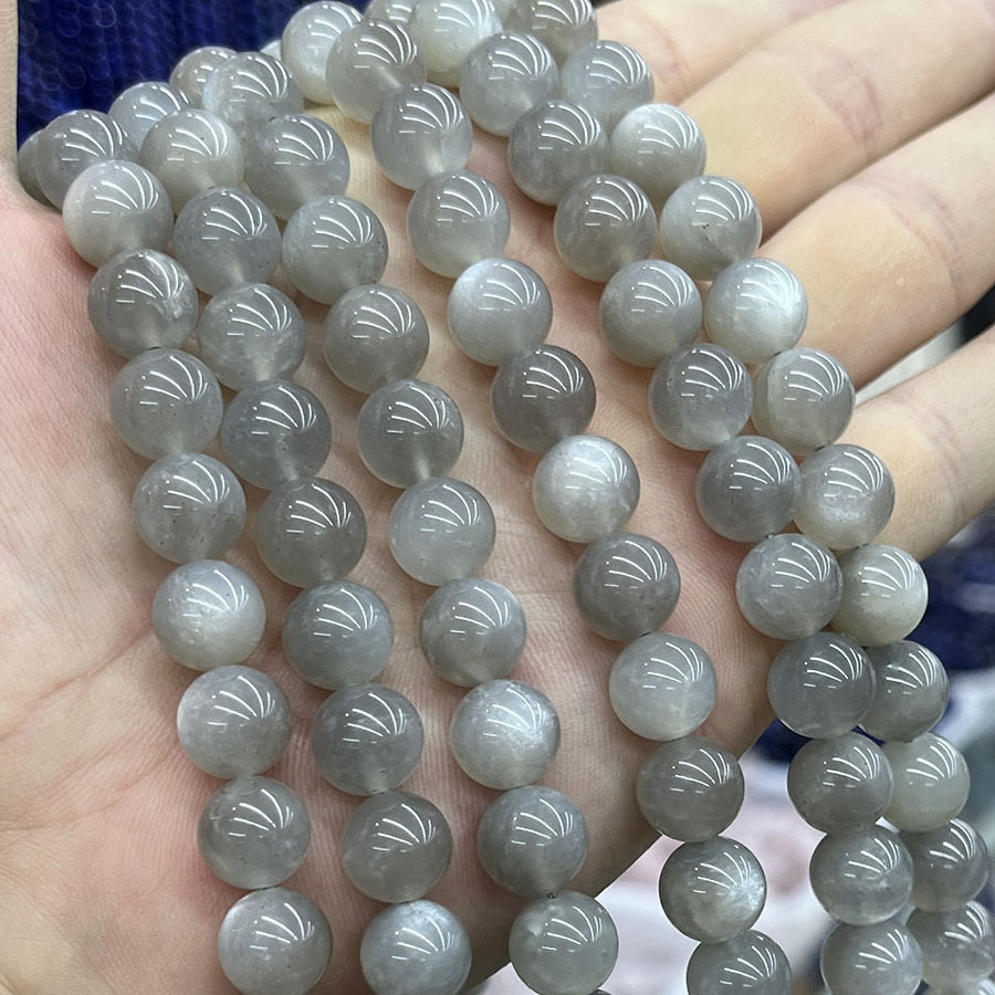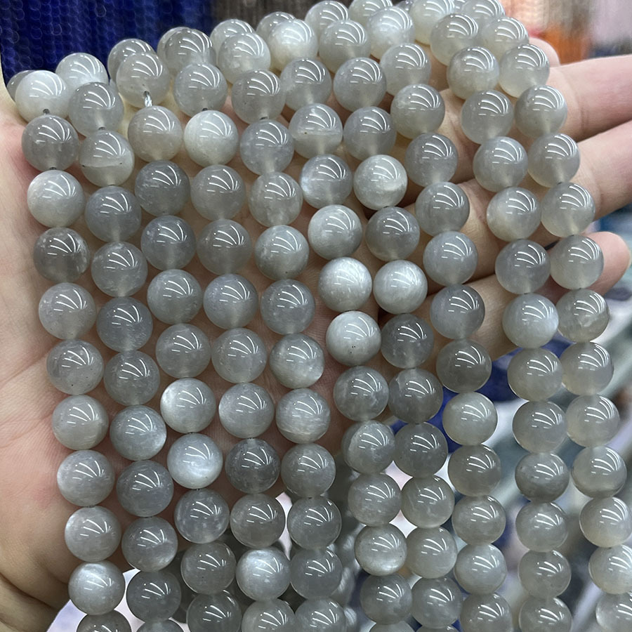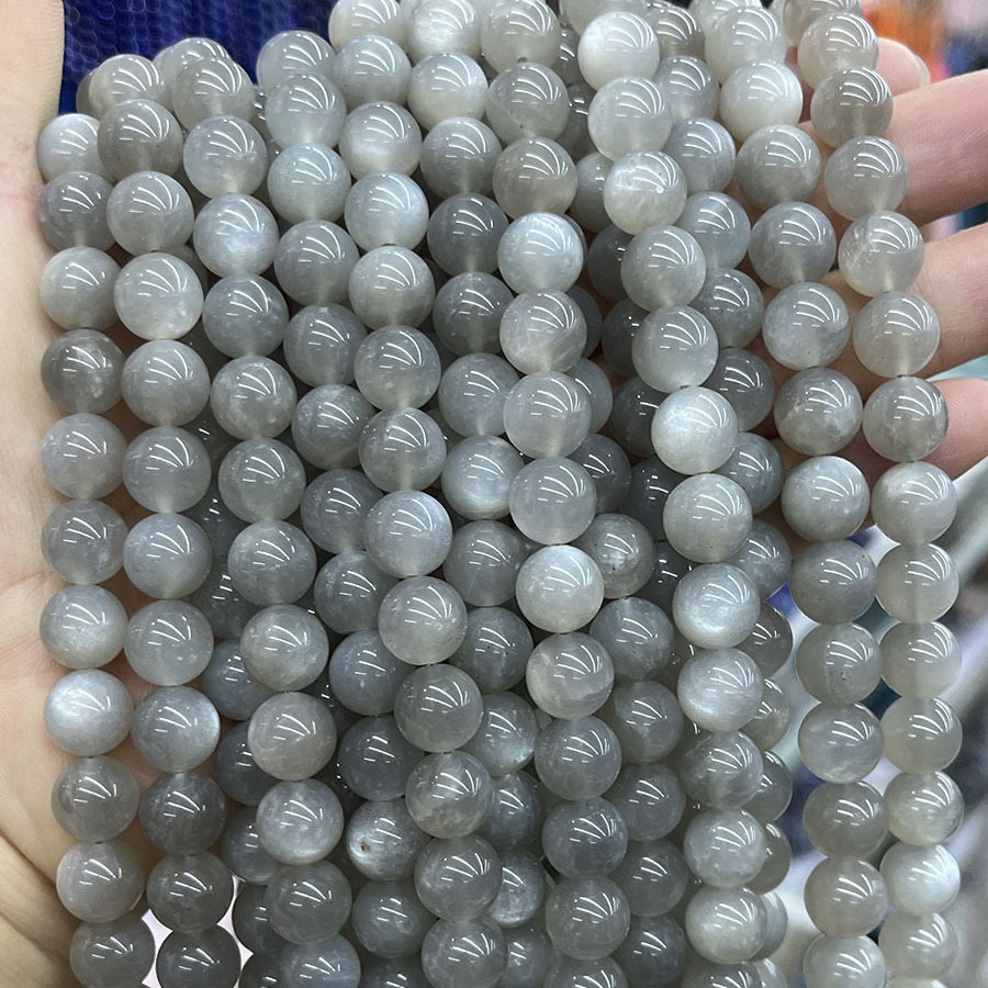 Perles Pierre de lune, Moonstone, Rond, DIY, gris, Longueur:Environ 38 cm, Vendu par brin