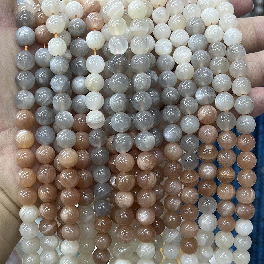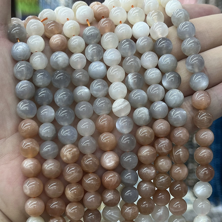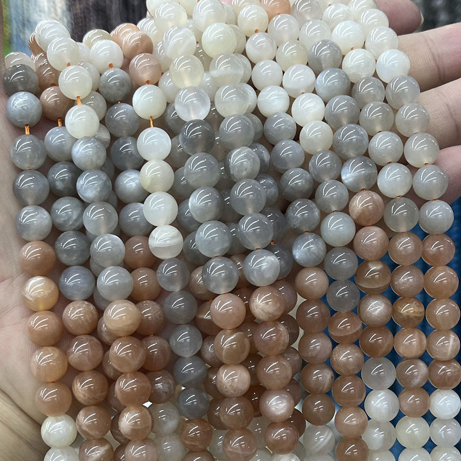 Perles Pierre de lune, Moonstone, Rond, DIY, multicolore, Longueur:Environ 38 cm, Vendu par brin