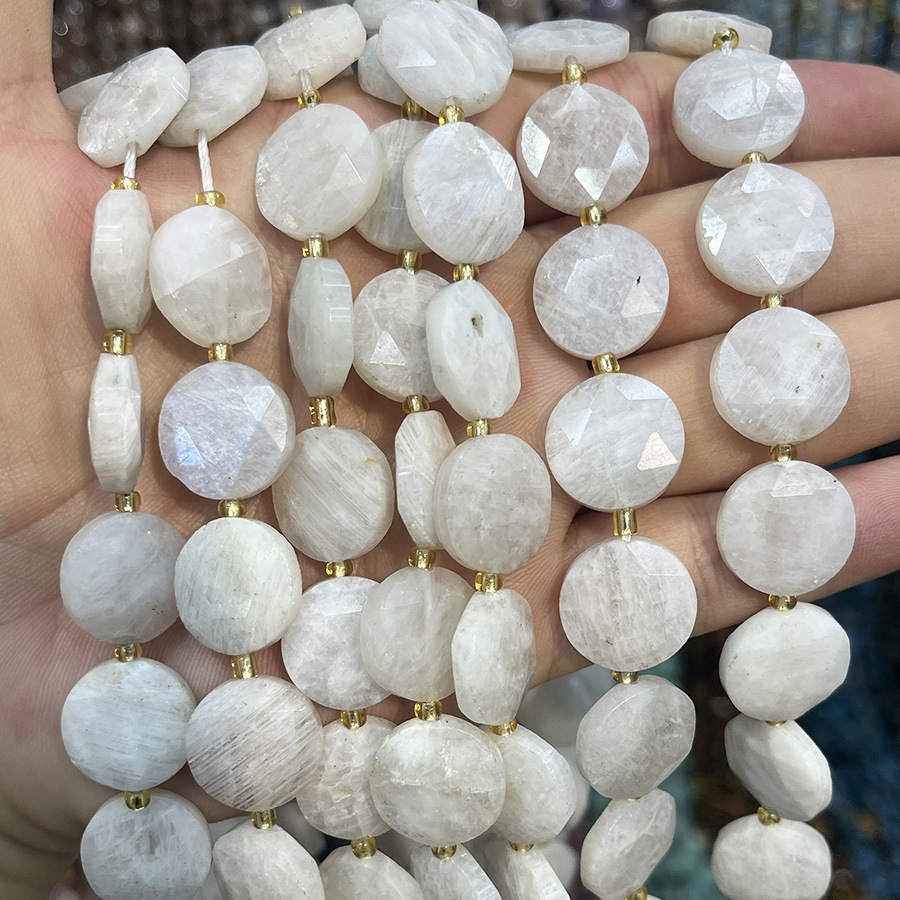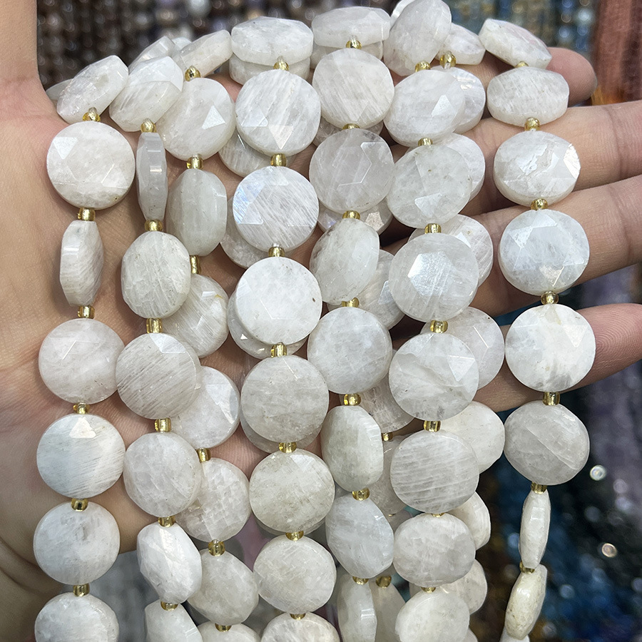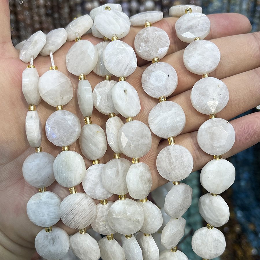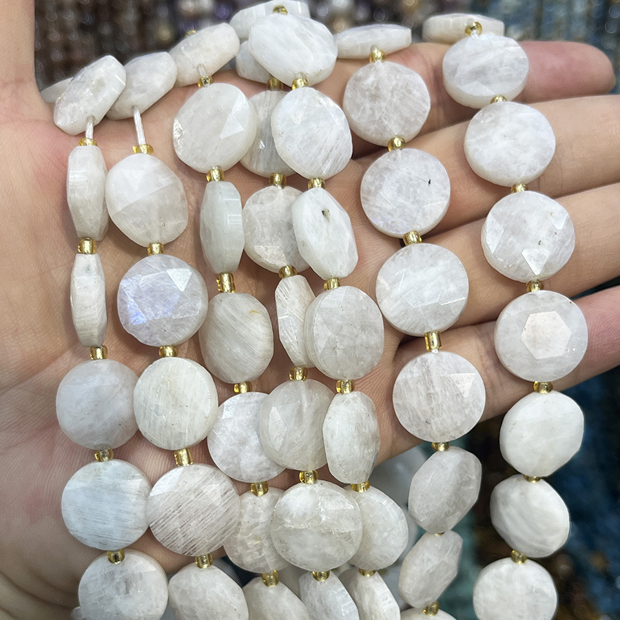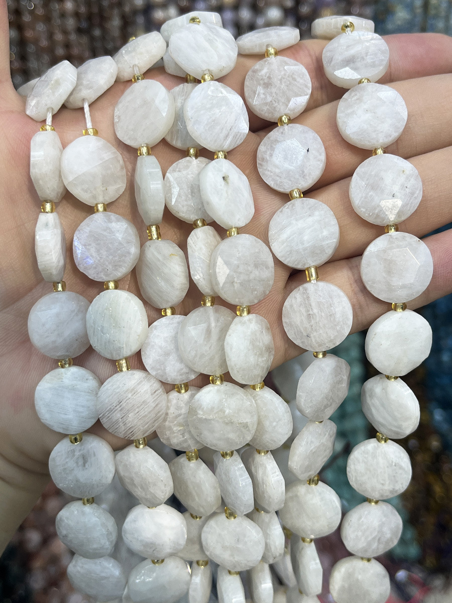 Perles Pierre de lune, Plat rond pouce Vendu par brin