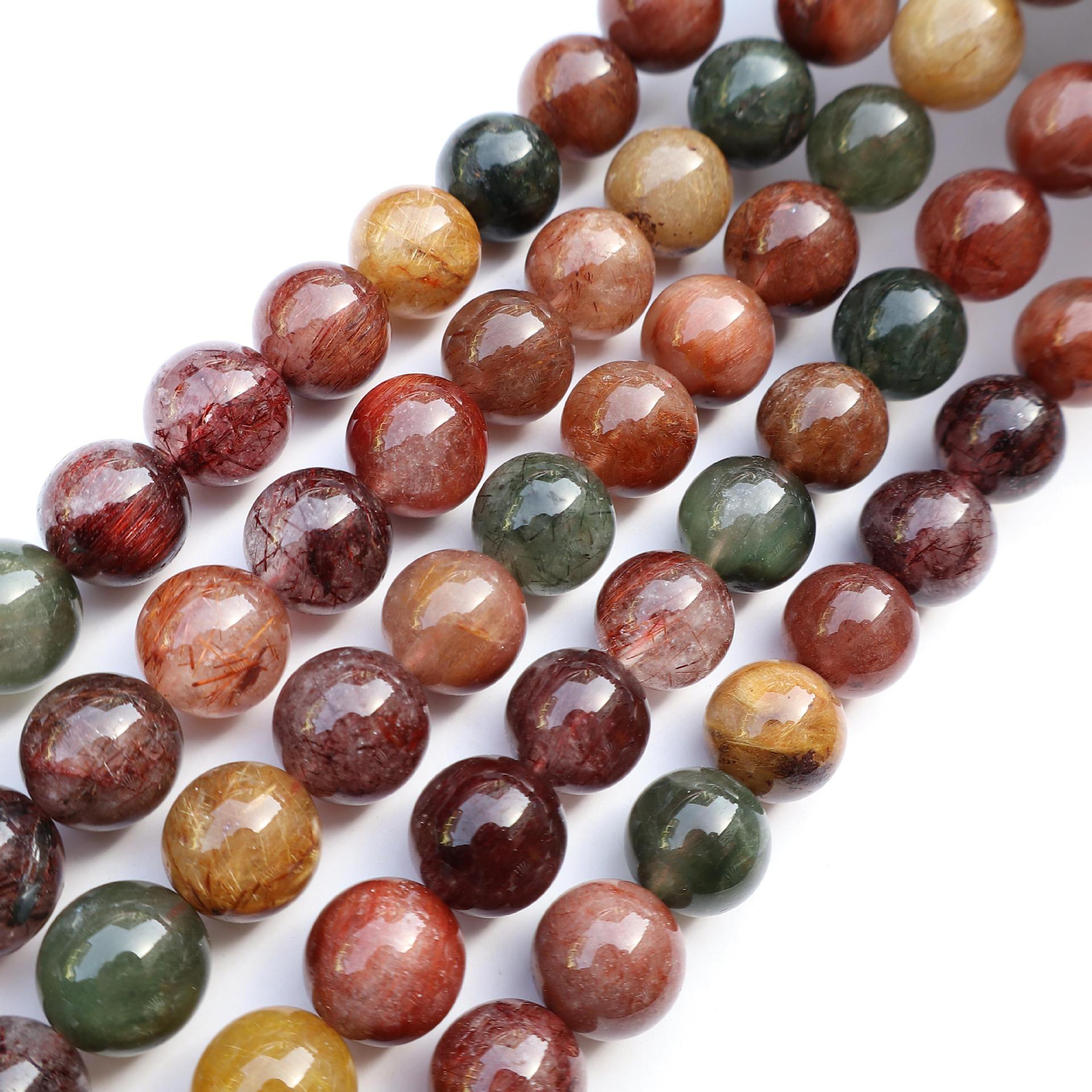 Perles Quartz rutile, Rond, naturel, 12mm pouce Vendu par brin