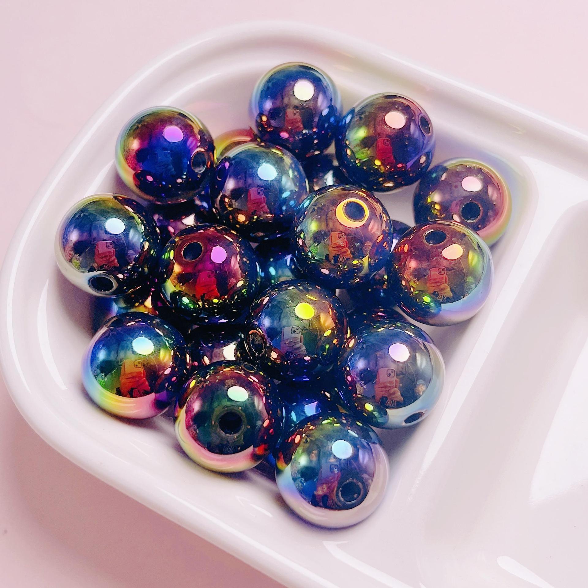 Perles acryliques plaquée, Acrylique, Rond, DIY, plus de couleurs à choisir, 16mm, Trou:Environ 3mm, 5PC/sac, Vendu par sac