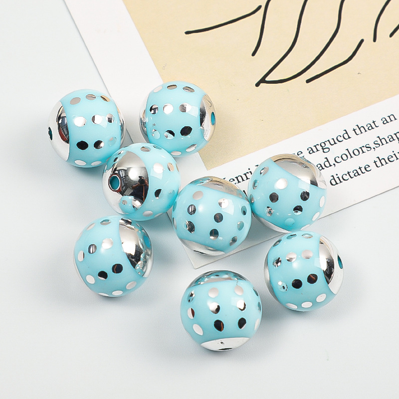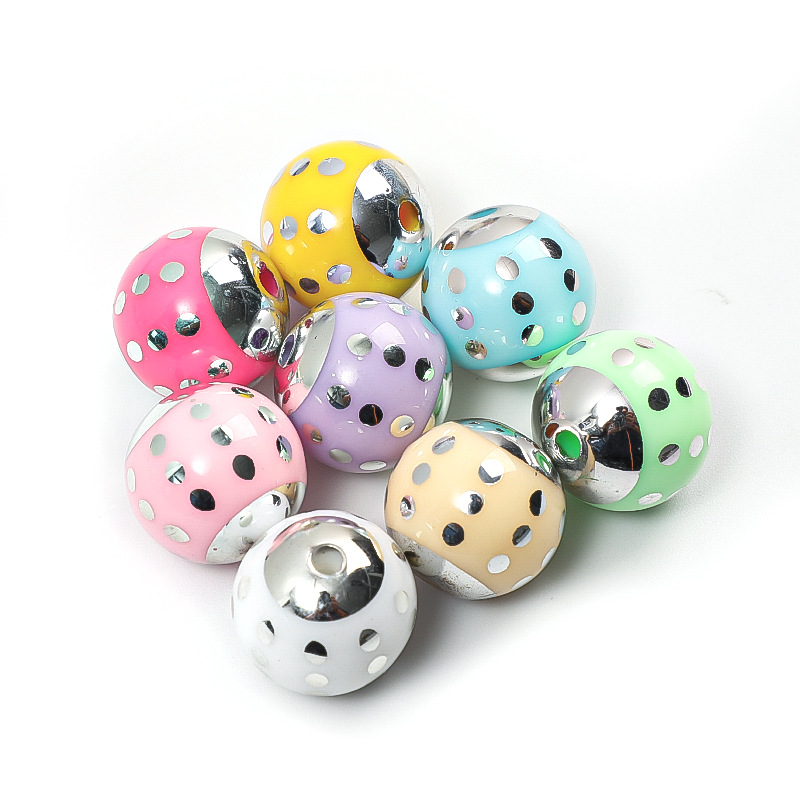 Perles acryliques plaquée, Acrylique, Rond, DIY, couleurs mélangées, 16x16mm, 100PC/sac, Vendu par sac