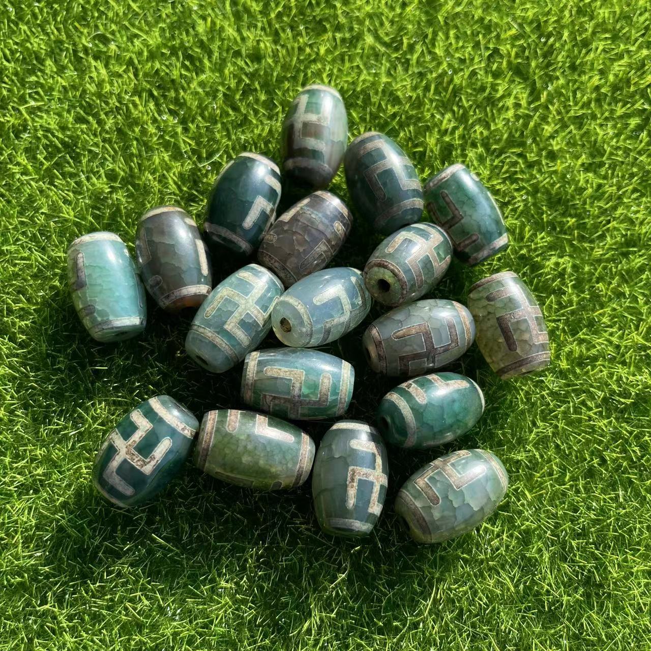 Perles agate dzi tibétaine naturelle, agate Tibétaine, DIY, vert, 14mm, Vendu par PC