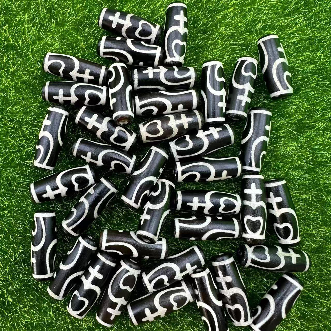 Perles agate dzi tibétaine naturelle, agate Tibétaine, DIY & modèles différents pour le choix, noire, 10x30mm, Vendu par PC