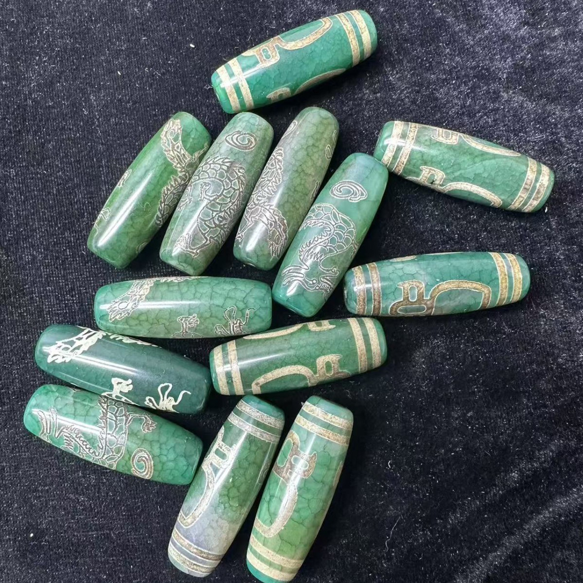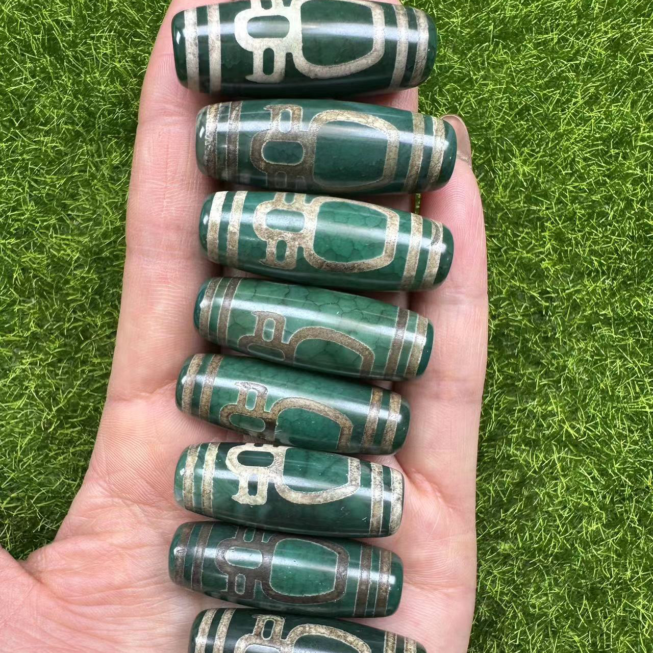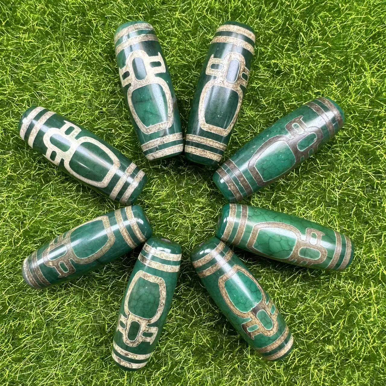 Perles agate dzi tibétaine naturelle, agate Tibétaine, DIY & modèles différents pour le choix, vert, 14x40mm, Vendu par PC
