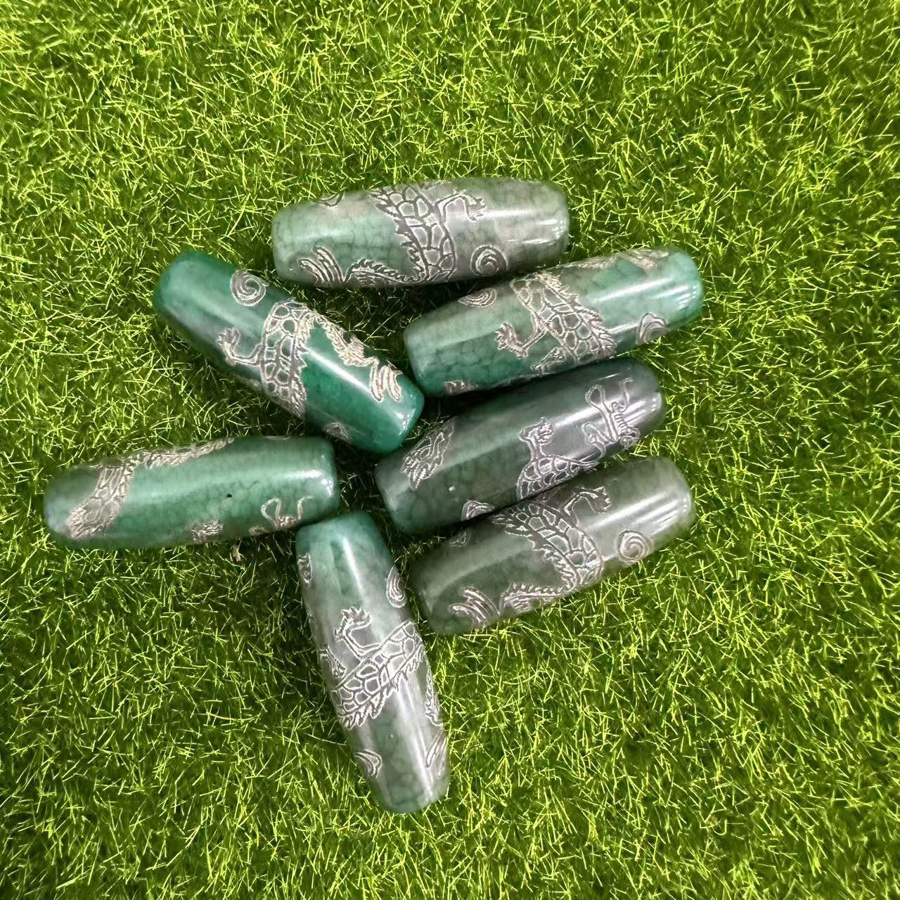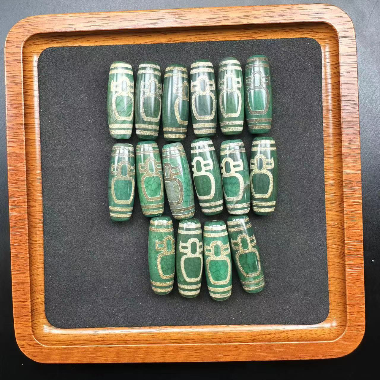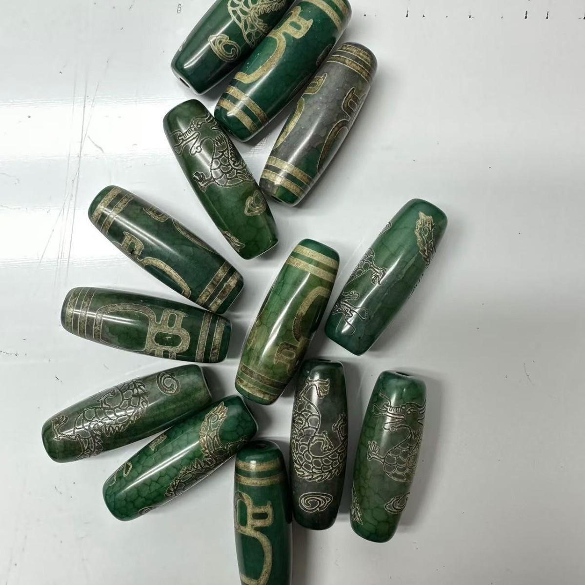 Perles agate dzi tibétaine naturelle, agate Tibétaine, DIY & modèles différents pour le choix, vert, 14x40mm, Vendu par PC