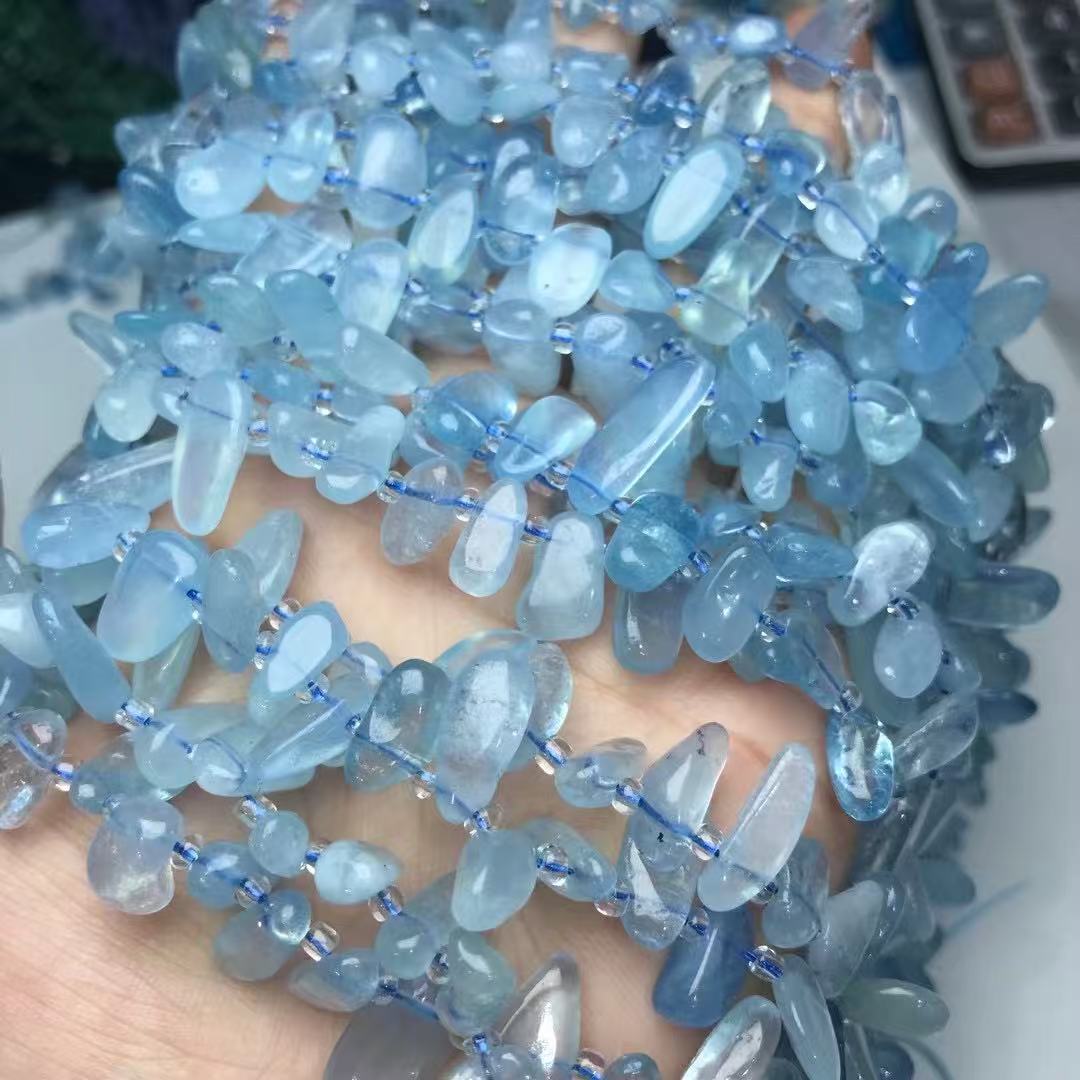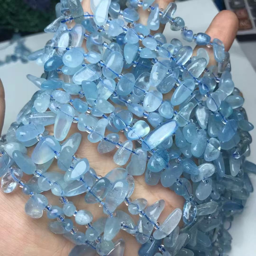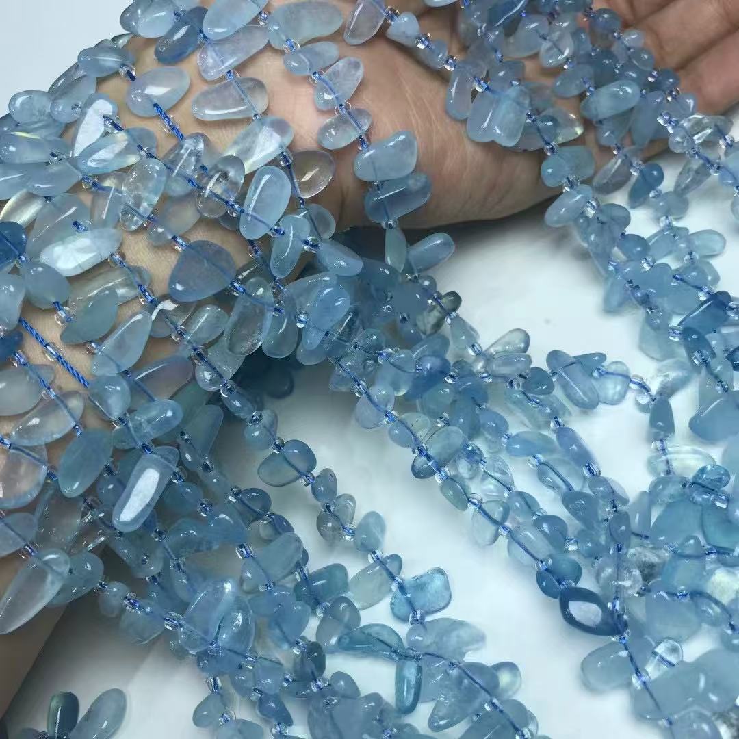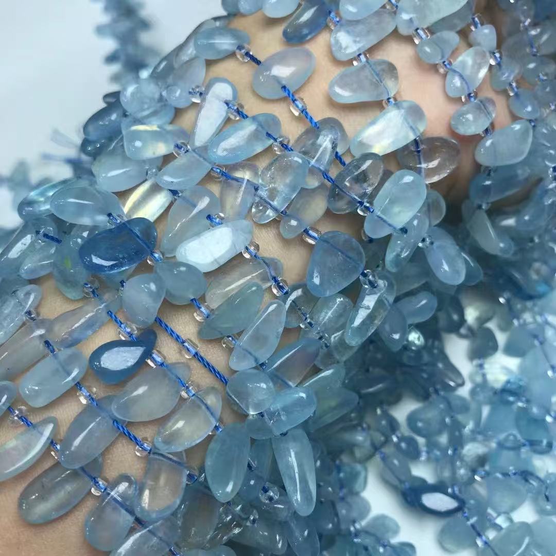 Perles aigue-marine, larme, naturel & DIY, beads length 10-15mm, Longueur:Environ 35-40 cm, Vendu par brin