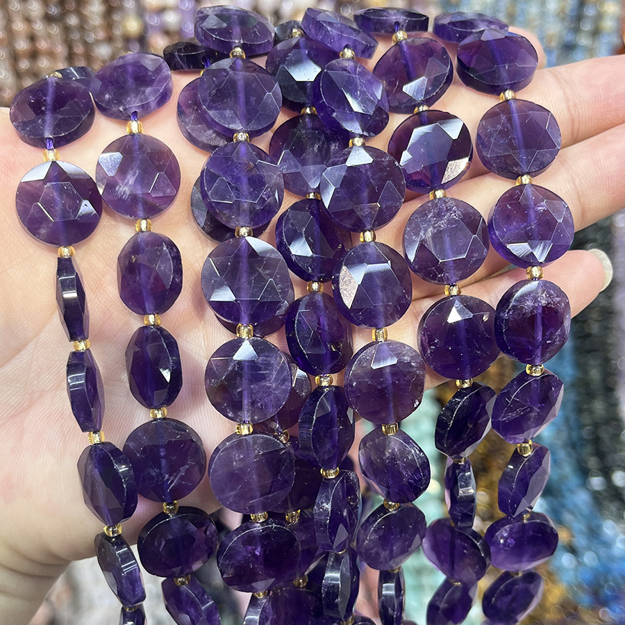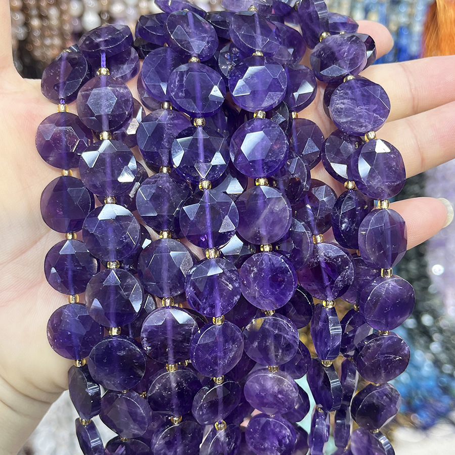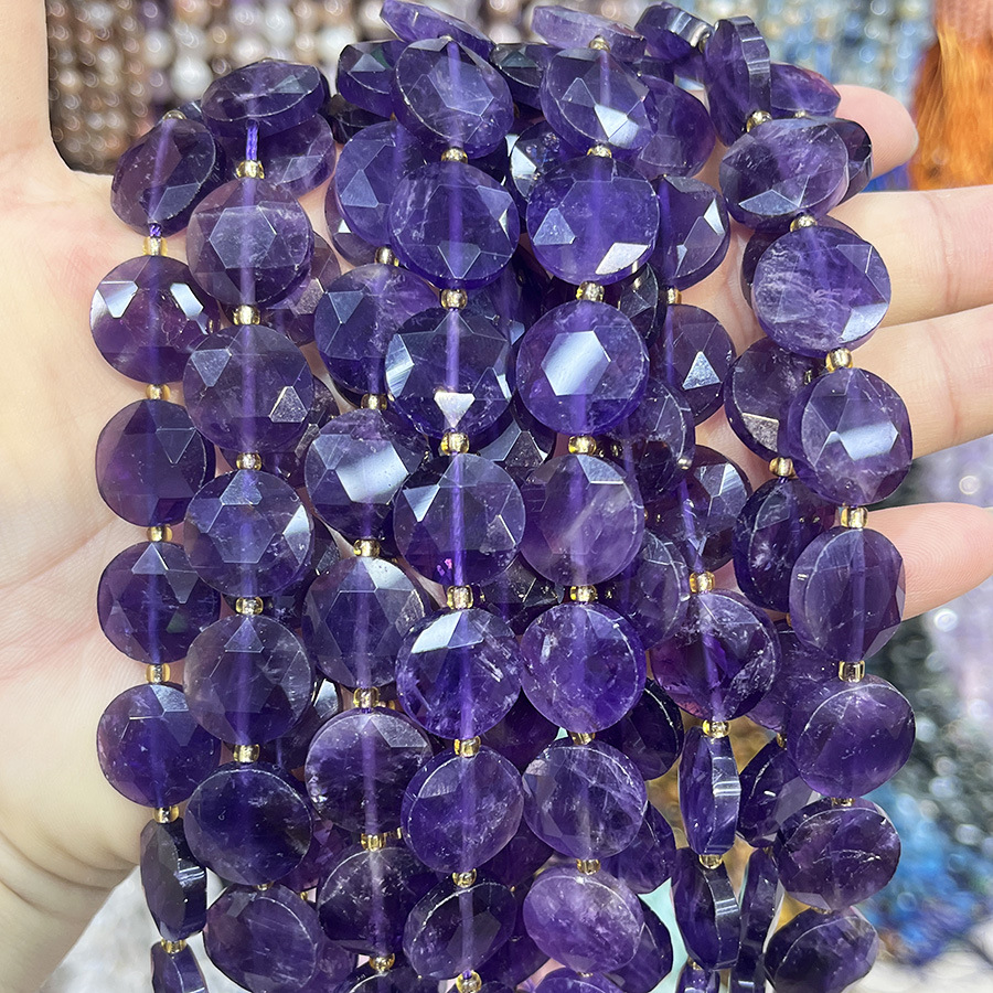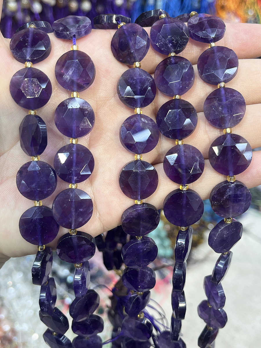 Perles améthystes Naturelles, améthyste, avec Seedbead, Plat rond, DIY, violet, 15mm, Longueur:38 cm, Vendu par brin