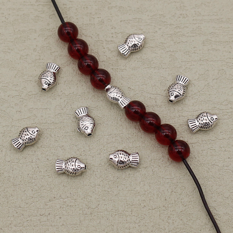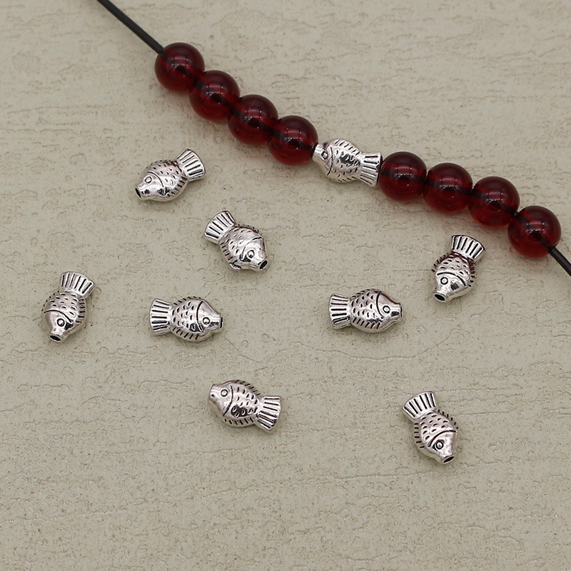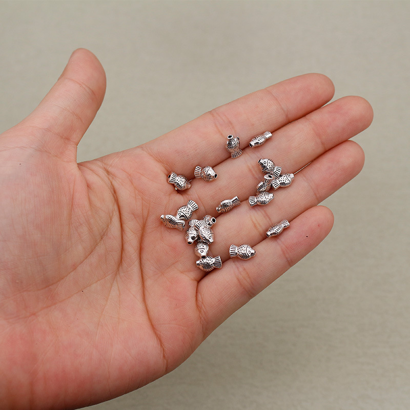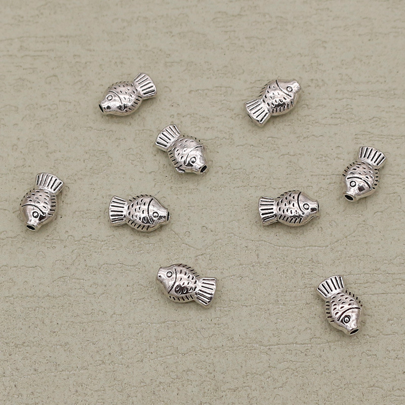 Perles animaux en alliage de zinc, poisson, Placage de couleur argentée, DIY, argent, 9x5.5mm, Vendu par PC