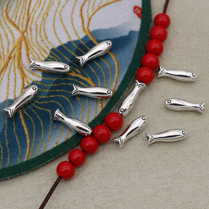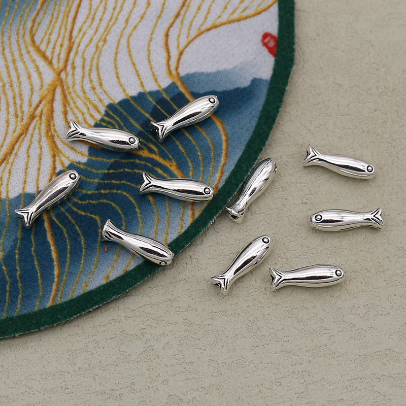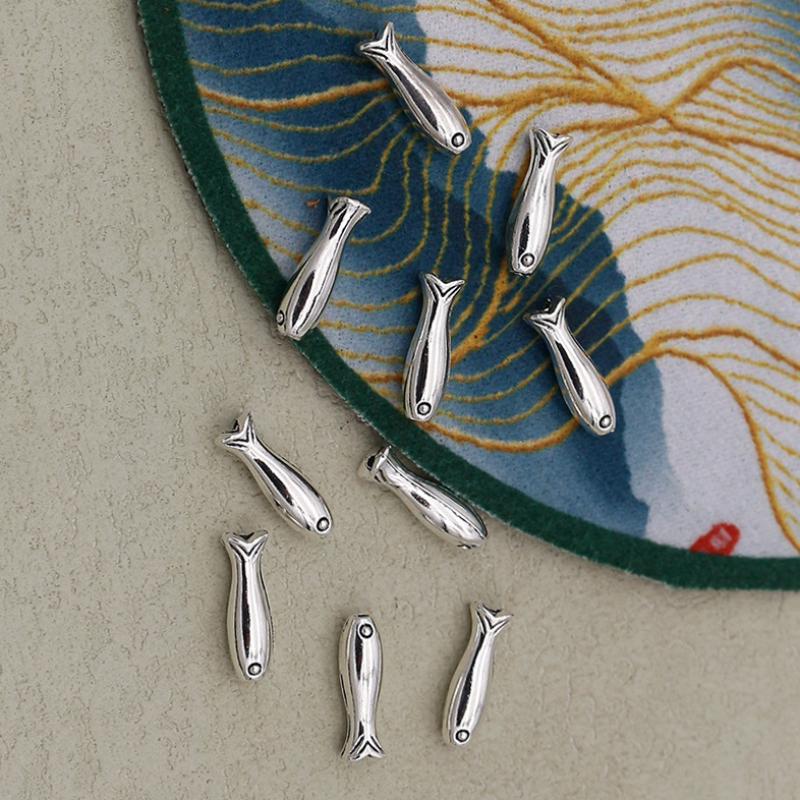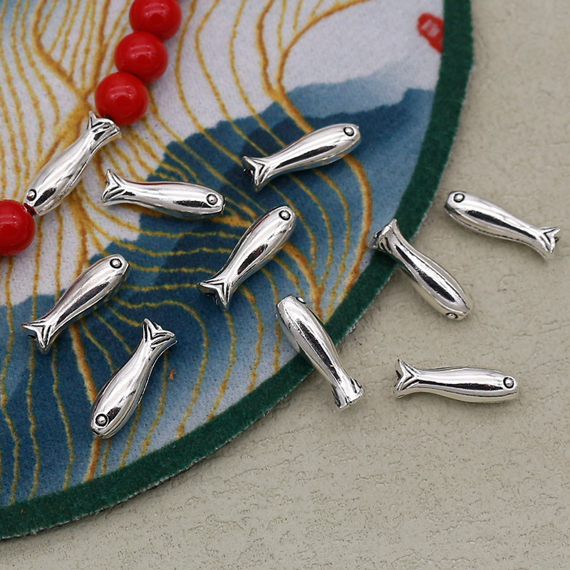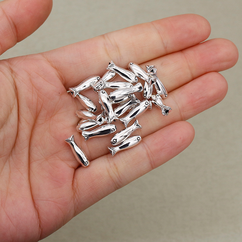 Perles animaux en alliage de zinc, poisson, Placage de couleur argentée, DIY, argent, 14x4mm, Trou:Environ 1.5mm, Vendu par PC