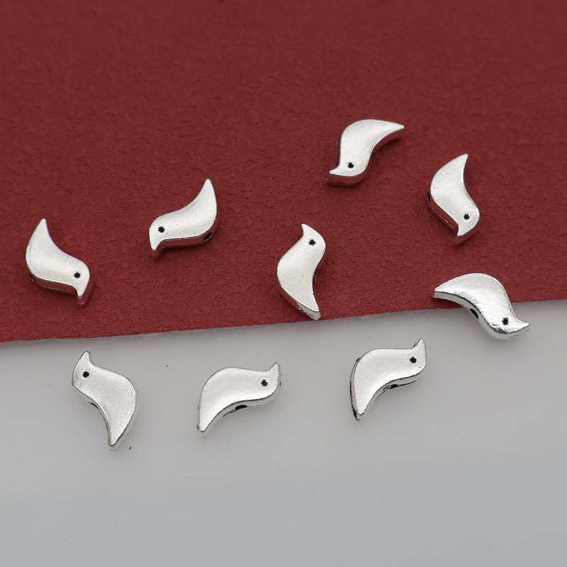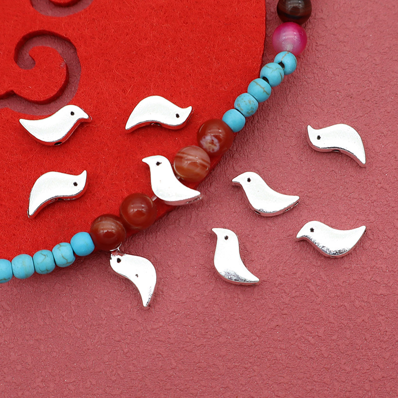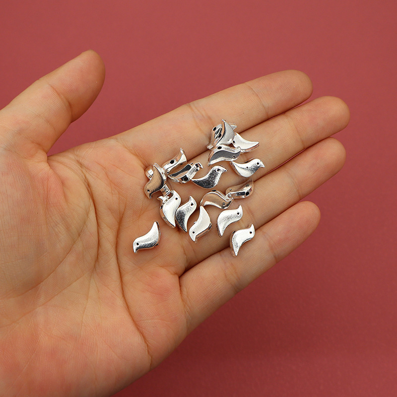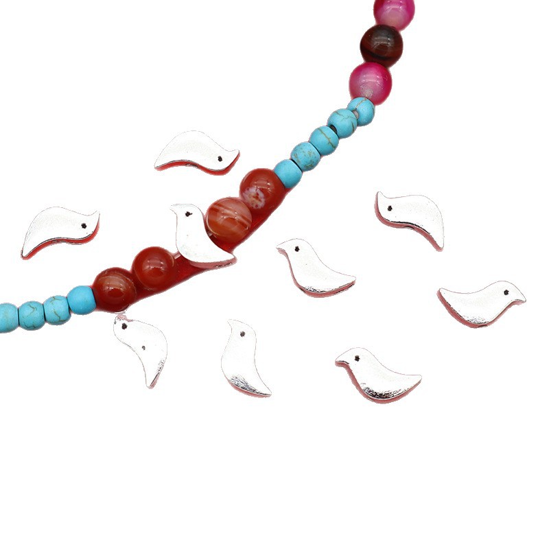 Perles animaux en alliage de zinc, oiseau, Placage de couleur argentée, DIY, 13x6x3mm, Diamètre intérieur:Environ 1mm, 100PC/sac, Vendu par sac
