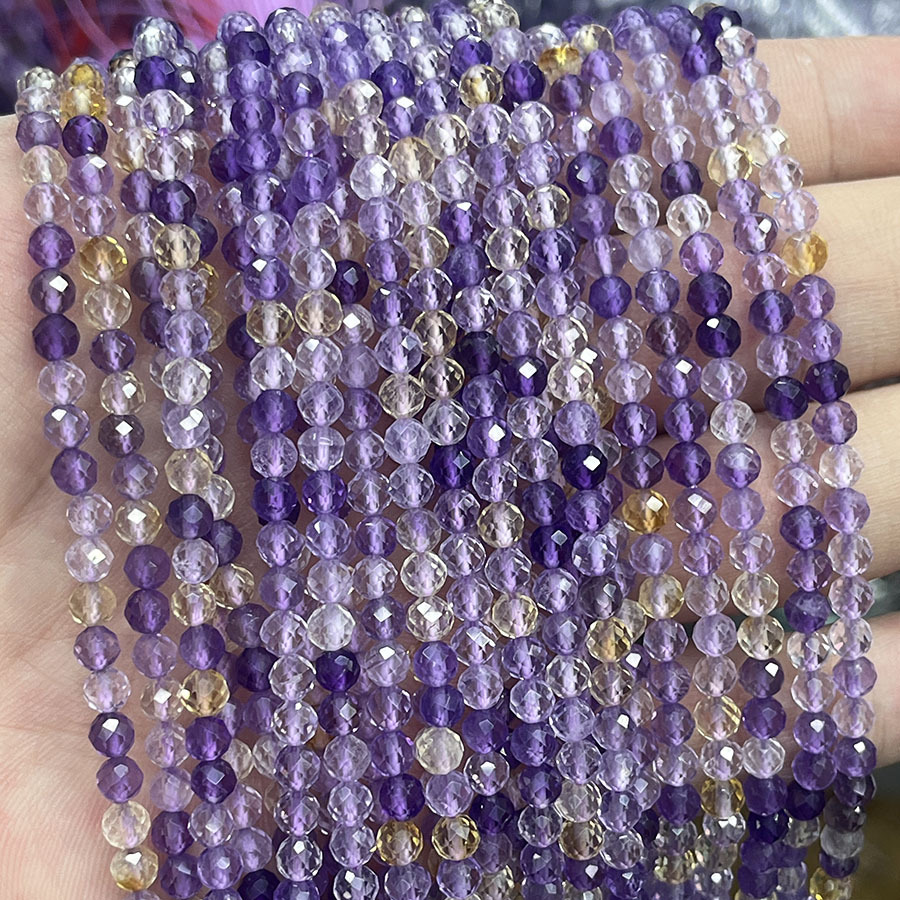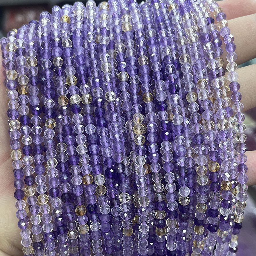 Perles d'Amétrine naturelle, Ametrine, Rond, facettes, grade AAA, 8mm pouce Vendu par brin