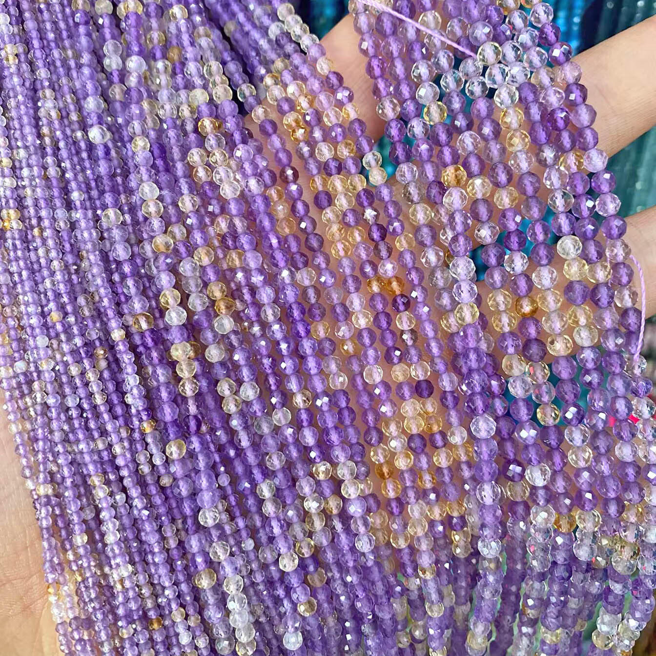 Perles d'Amétrine naturelle, Ametrine, Rond, facettes, grade AAA, 8mm pouce Vendu par brin