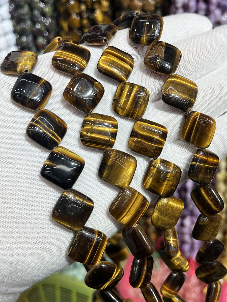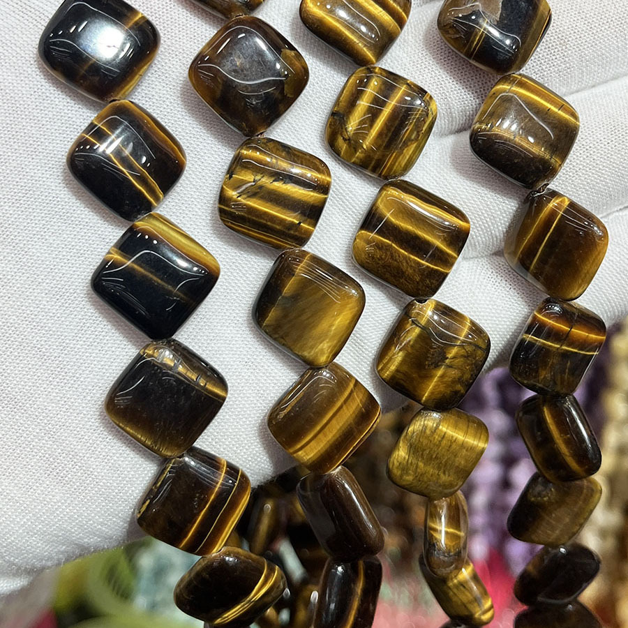 Perles d'Oeil de tigre, Losange, DIY, couleurs mélangées, 15mm, Longueur:38 cm, Vendu par brin