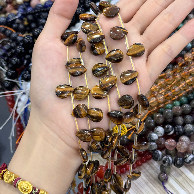 Perles d'Oeil de tigre, larme, DIY, couleurs mélangées, 14x10x5mm, Longueur:38 cm, Vendu par brin