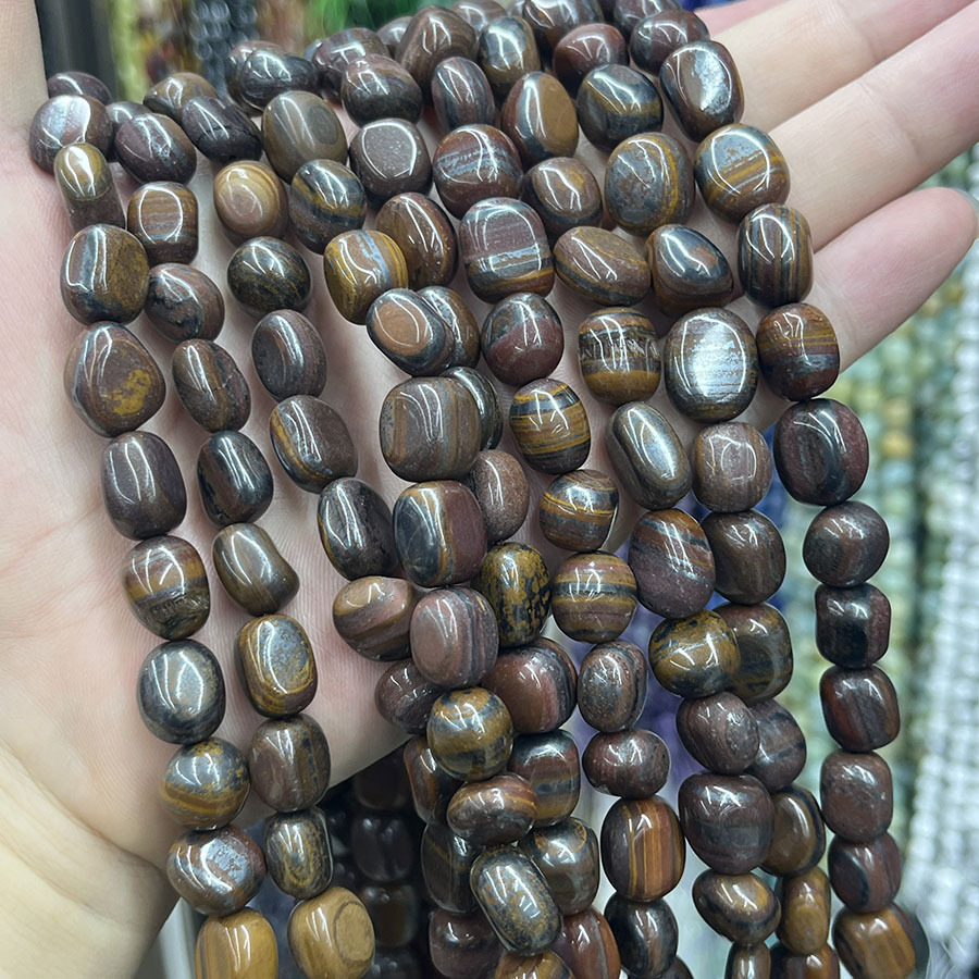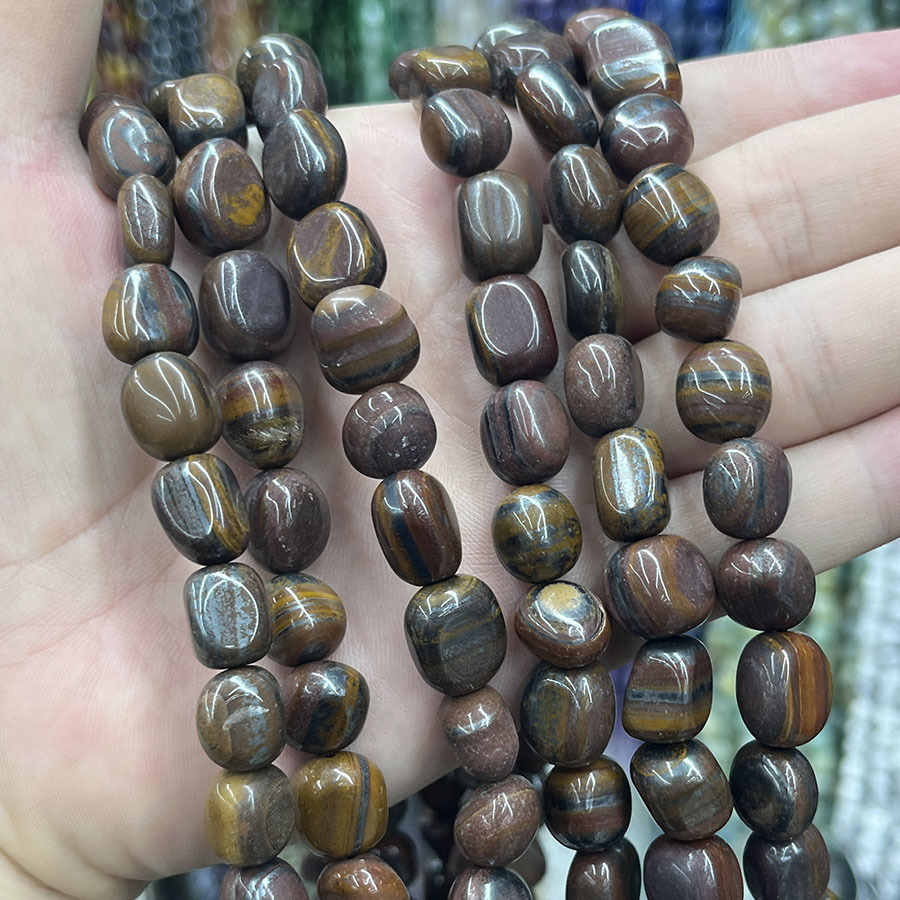 Perles d'Oeil de tigre, pepite, brun, 14-26mm  4-8mm .5 pouce, Vendu par brin