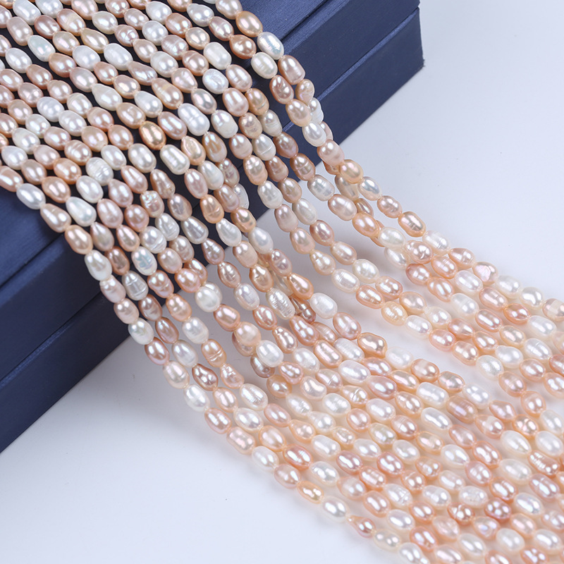 Perles d'eau douce de culture de riz, perle d'eau douce cultivée, DIY, plus de couleurs à choisir, 4-5mm, Longueur:37 cm, Vendu par brin